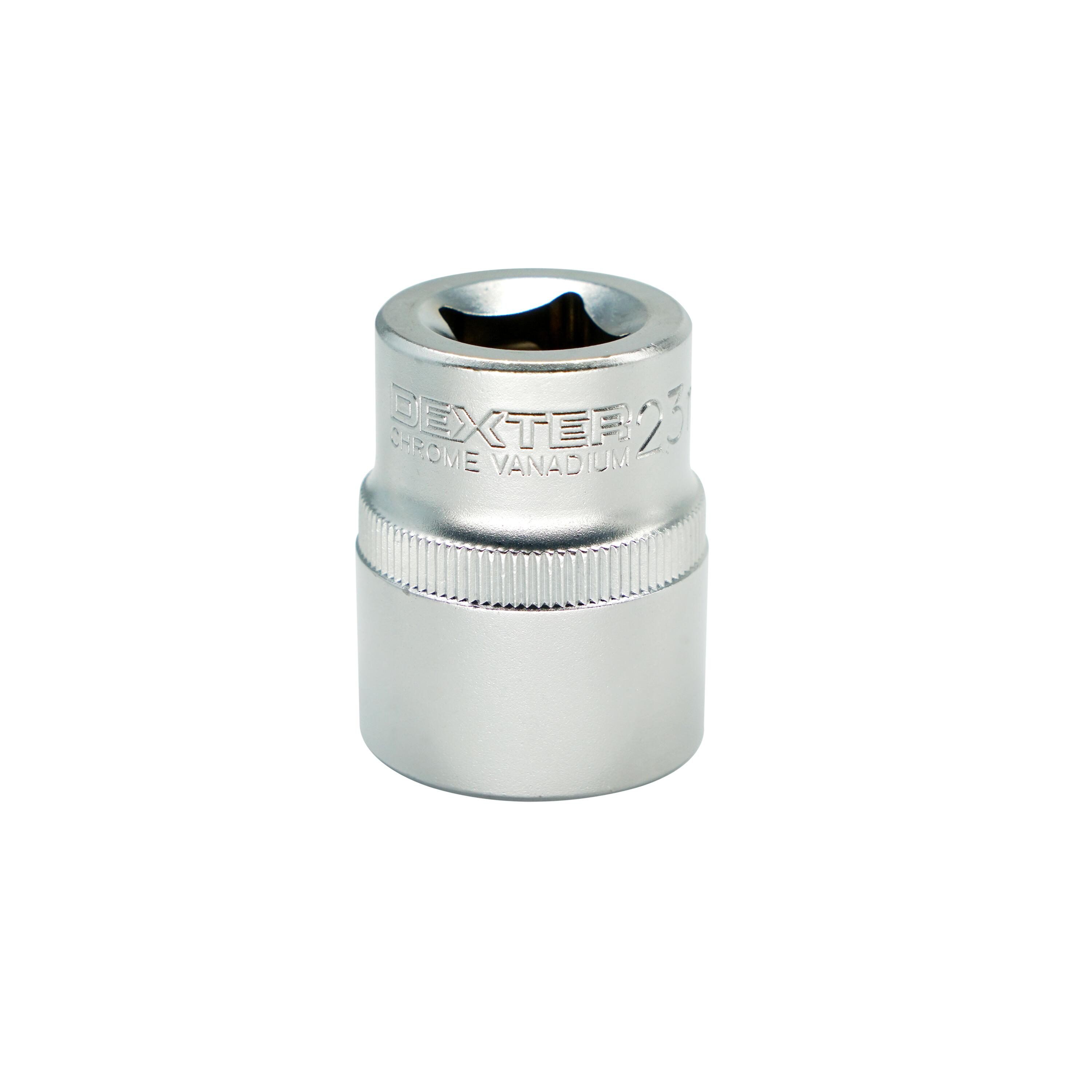 Douille 6 pans 23mm DEXTER avec carré d'entraînement 1/2", idéale pour serrer/desserrer des écrous ou des têtes de vis hexagonales. Permet de serrer avec force et s'adapte à tout support 1/2" (poignées, clé à cliquet, boulonneuse...).L'acier chrome vanadium apporte une grande résistance.