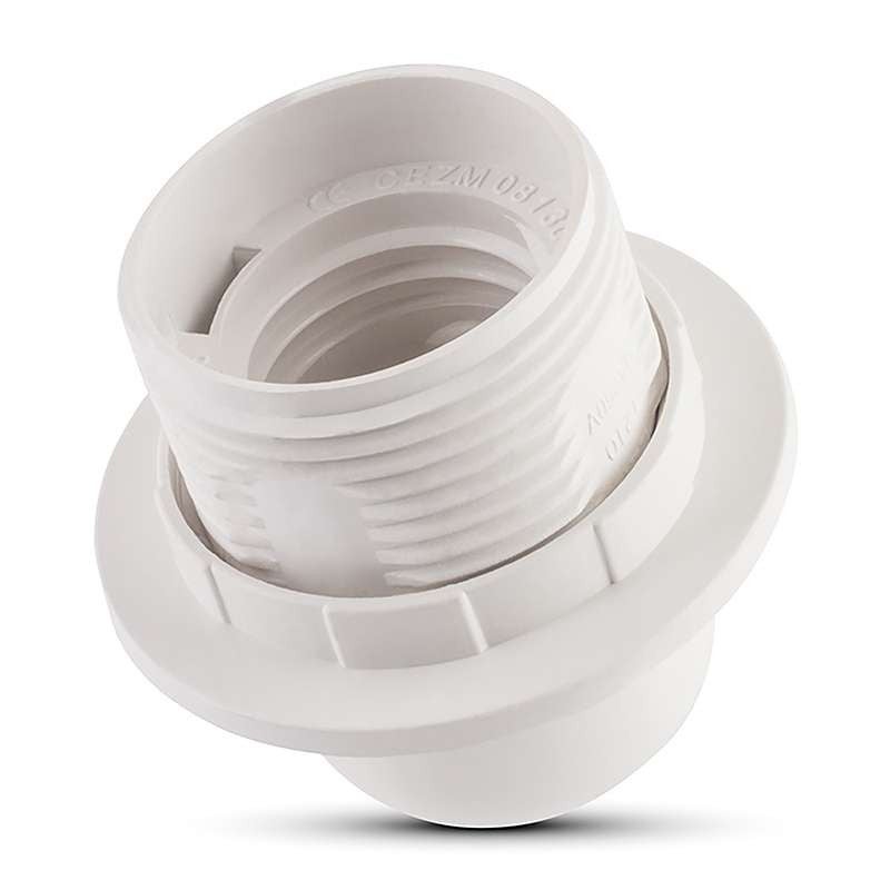 Douille culot E27 Thermoplastique simple bague blanc.