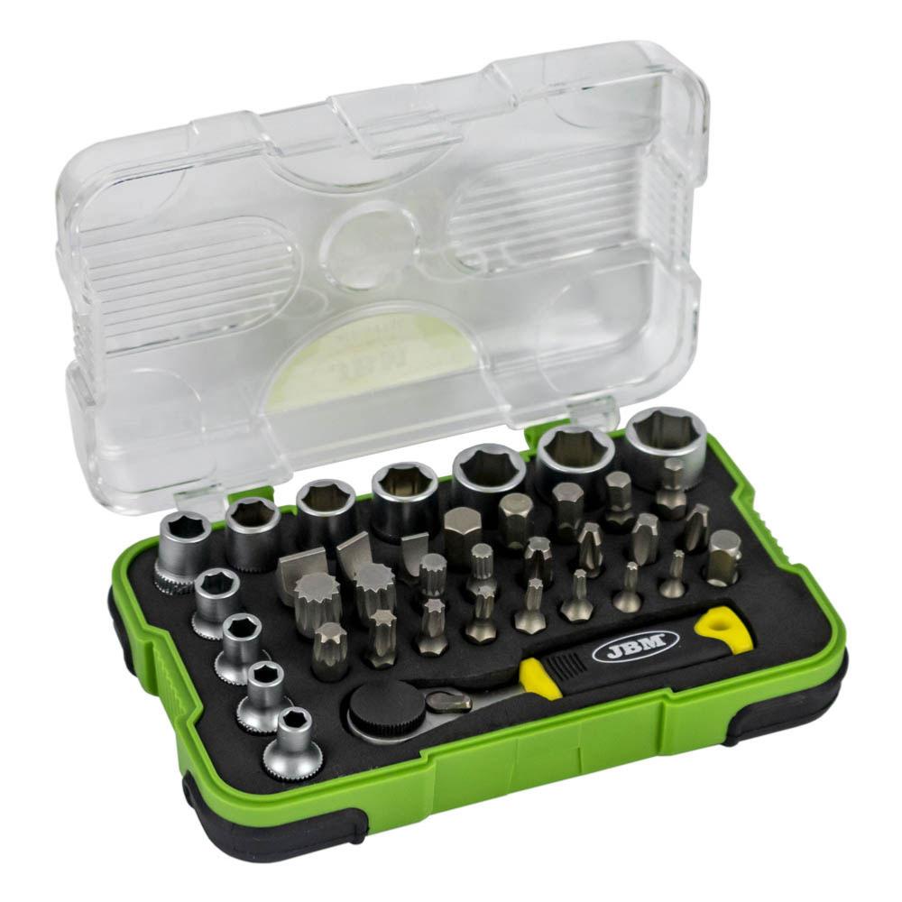 Coffret douilles et embouts 1/4 avec mini cliquet.