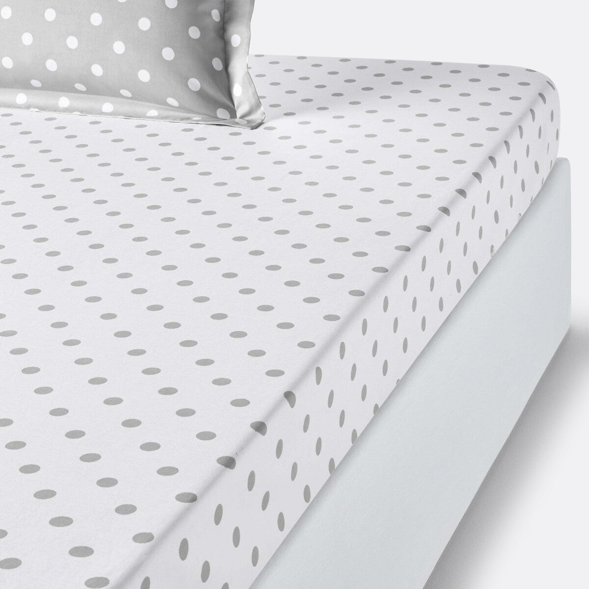 Drap housse pur coton imprimé pois, Clarisse - Gris/blanc - 90 x 200 cm