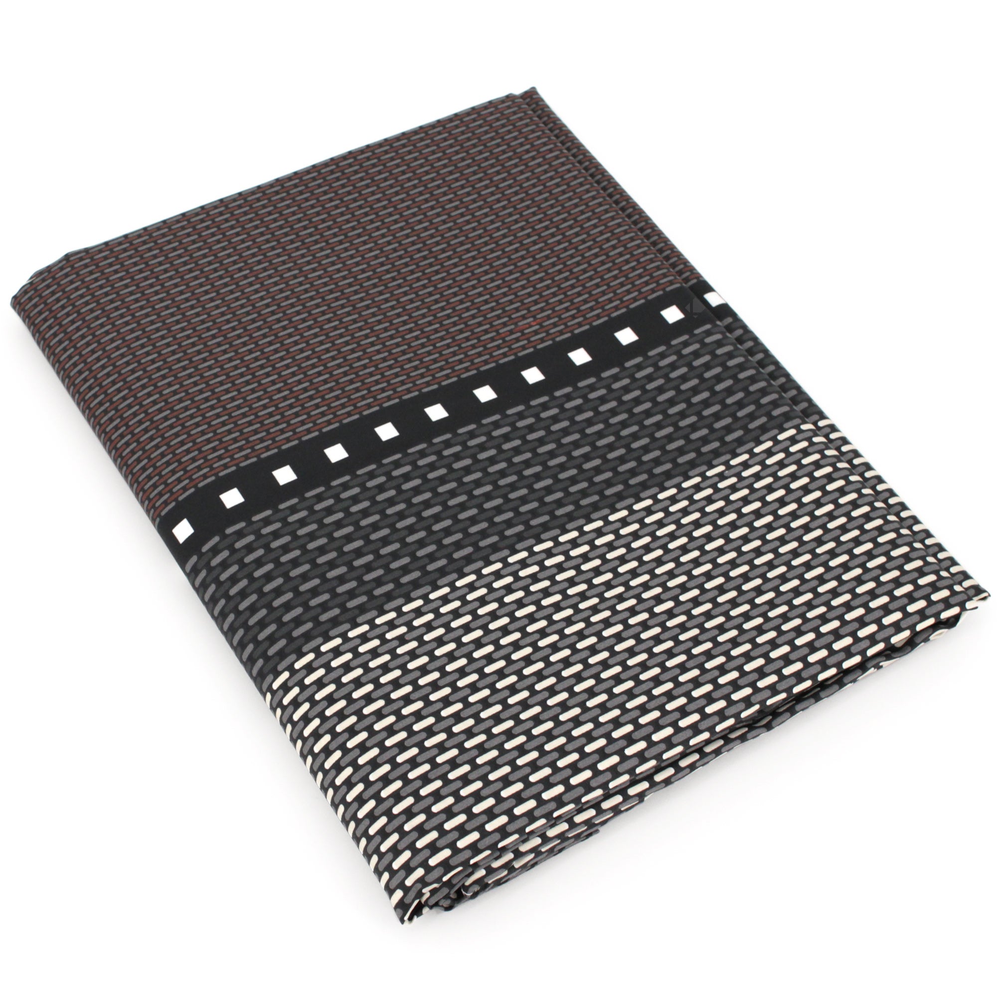 Ambiance moderne avec cette parure de lit aux motifs géométriques sur un fond bi-couleurs déclinés dans des tons de noir, gris, chocolat et écru pour une chambre chic et sophistiquée.