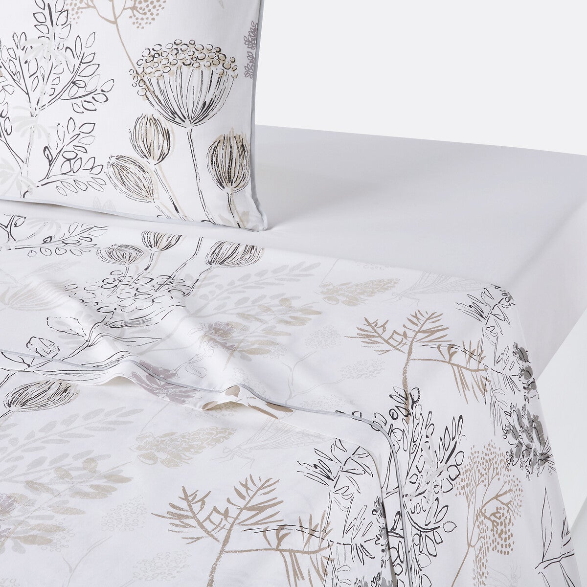 Drap plat coton, Romarin - Imprimé fond blanc - 180 x 290 cm