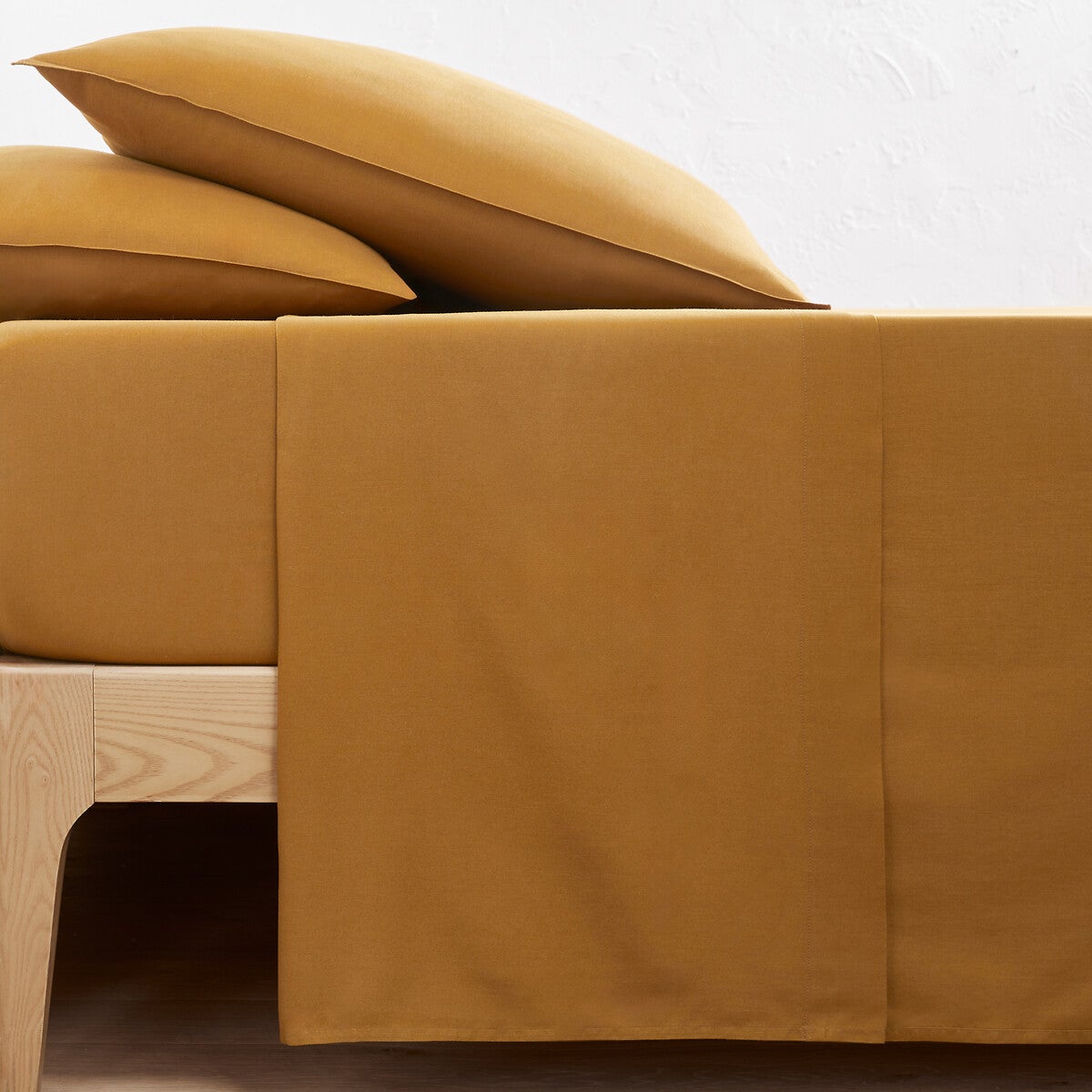 Drap plat uni en coton lavé, Scenario - Bronze - 180 x 290 cm