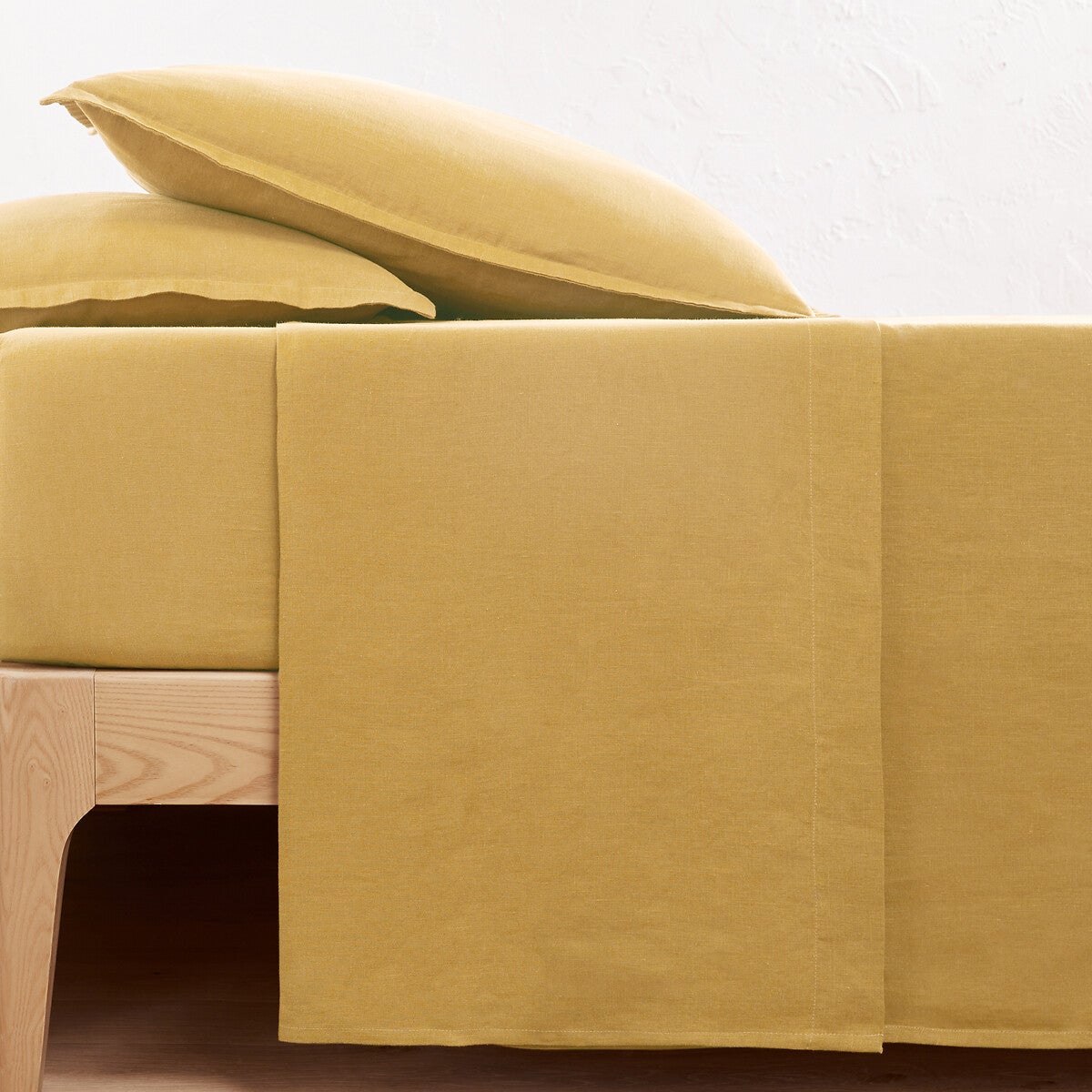 Drap plat uni en lin lavé, Linot - Camomille - 240 x 290 cm