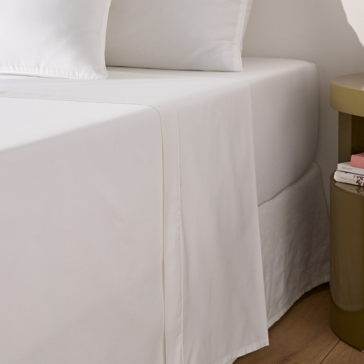 Drap plat uni en satin de coton, Opale - Blanc - 180 x 290 cm