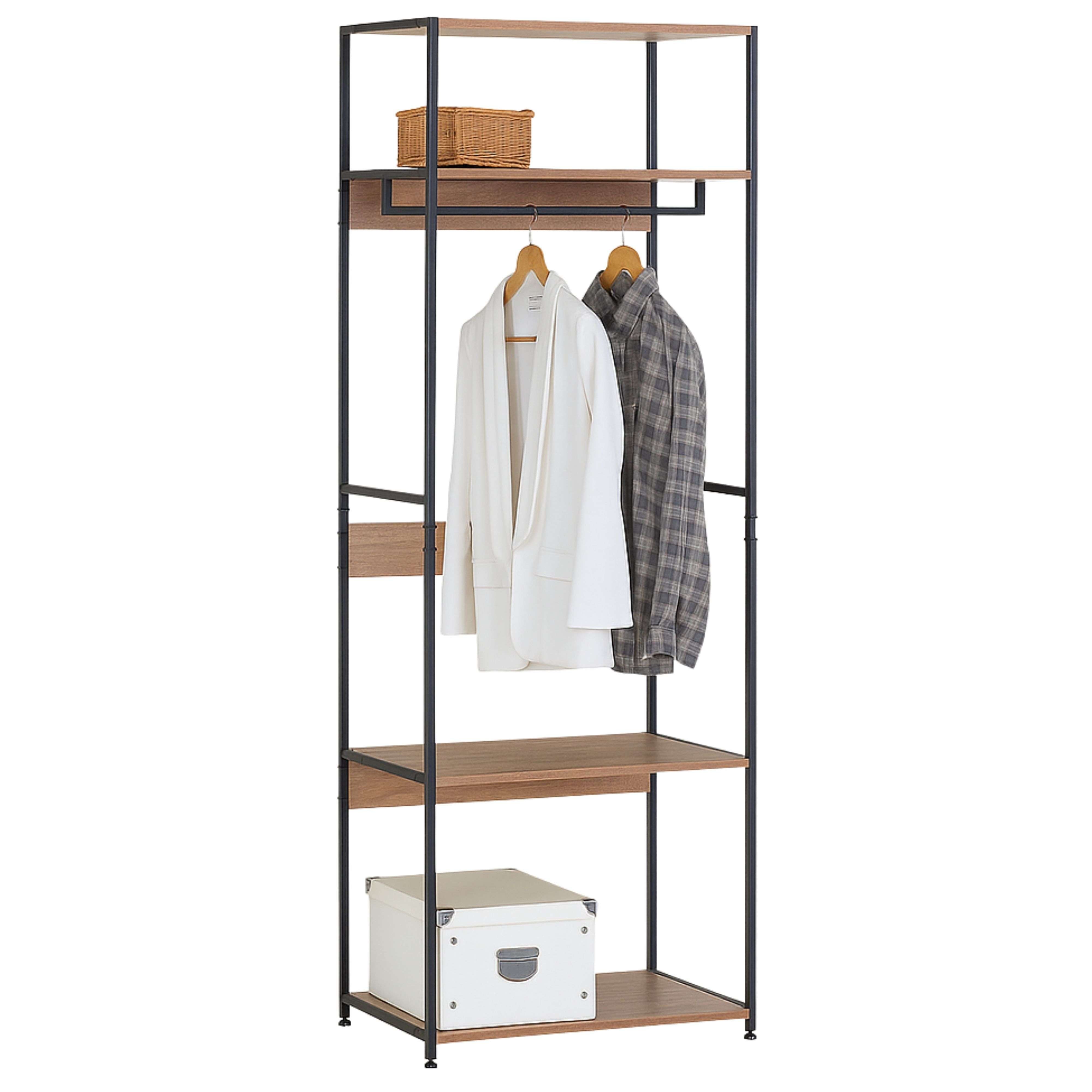 Dressing ouvert Lofi avec 3 étagères et tringle à vêtements en chêne Cambrian et noir 60 x 175 x 40 cm