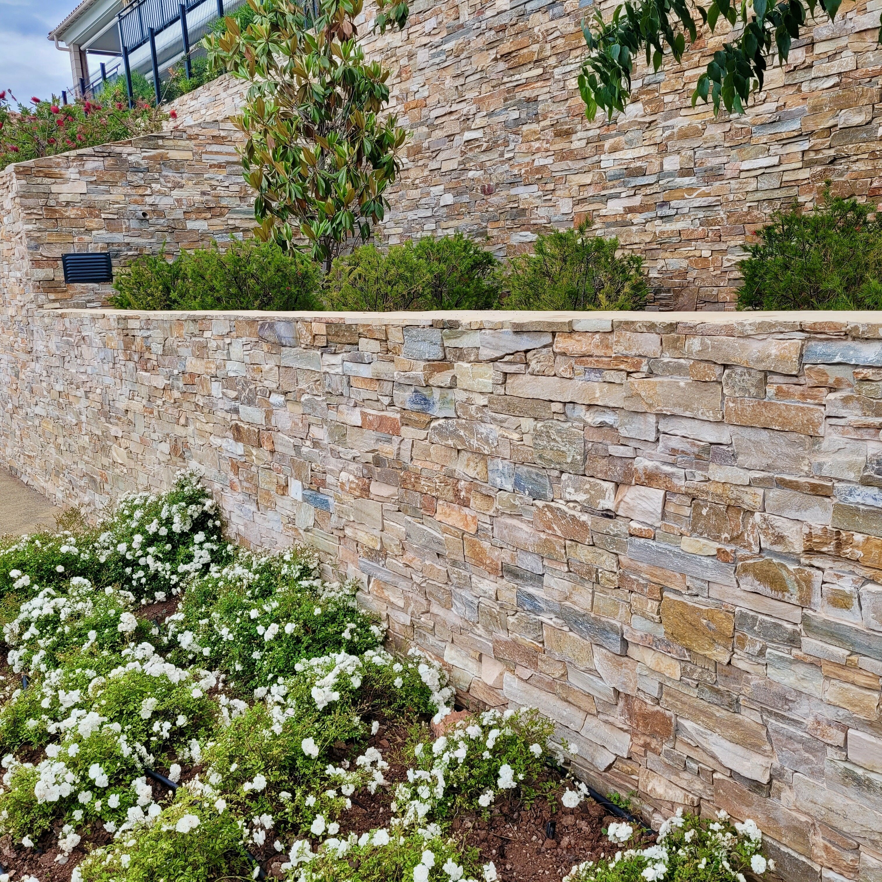 Pierres de Parement en Quartzite au format en Z 15x55-60/3,5-4,5cm. Ce parement mural même s'il est souvent utilisé en extérieur peut parfaitement se poser en intérieur y compris sur placoplatre (BA13). Parement sur support béton avec agrafes métalliques permettant une fixation mécanique en plus de la colle lorsque nécessaire. Les angles au format en Z 15x20+15x40/3,5-4,5cm sont vendus à l'unité. Afin d'en faciliter l'entretien, nous préconisons l'application d'un produit hydrofuge et oléofuge MGTH ou MGT23 qui protège des traces d’eau, de gras, et de pollution atmosphérique.