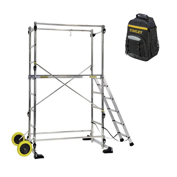 Echafaudage de jardin - Hauteur de travail max. 3,40m - 2 roues Ø 250mm - Plateau 1,30x0,46m + Sac à dos de chantier - 209700-SAC