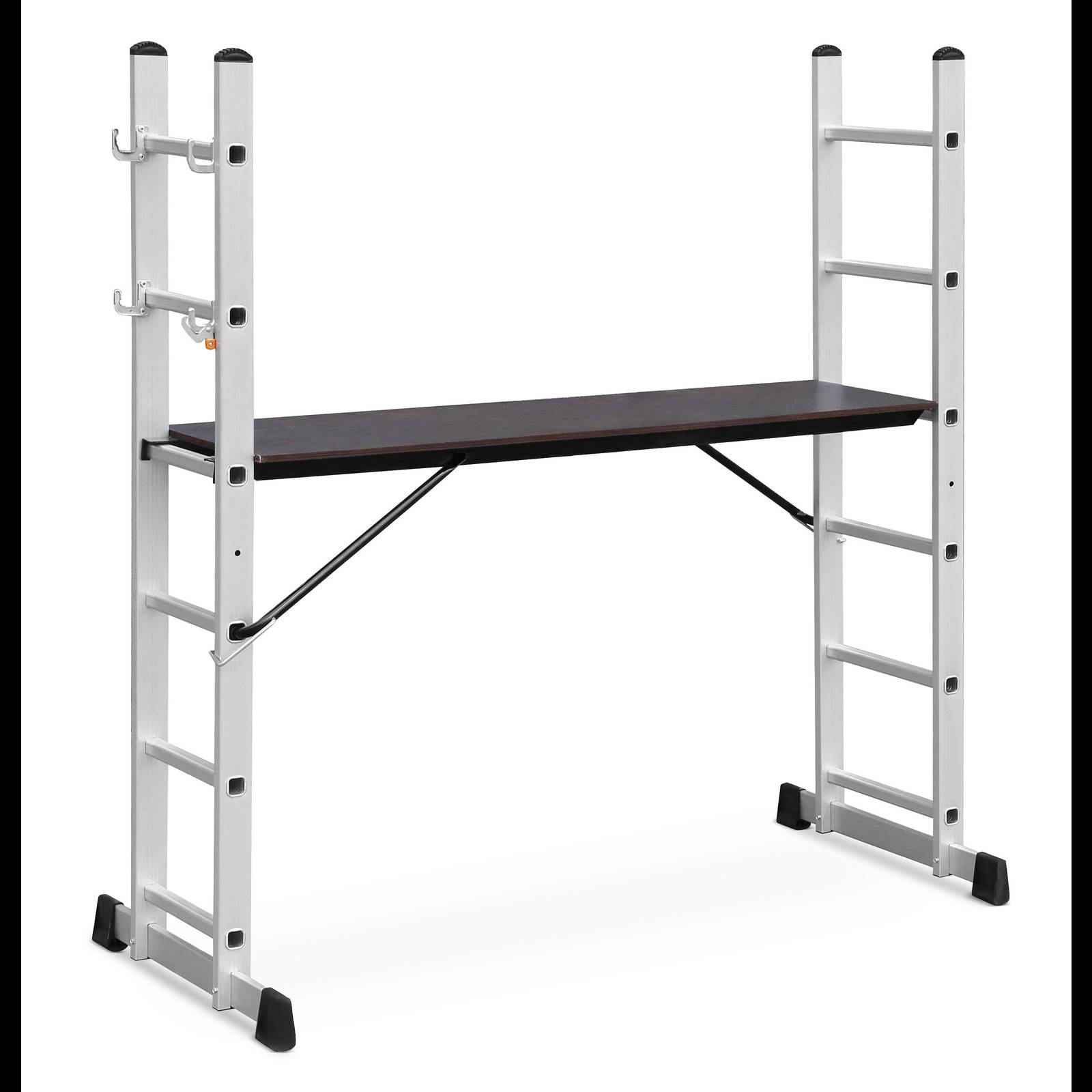 Cette flexibilité vous permet d'accomplir efficacement différentes tâches à l'intérieur comme à l'extérieur. Avec une capacité de charge de 150 kg et une conception modulaire, cet échafaudage est idéal pour les applications de construction et industrielles.| Dimensions: 167x165x70.6 cm, 14.8 kg