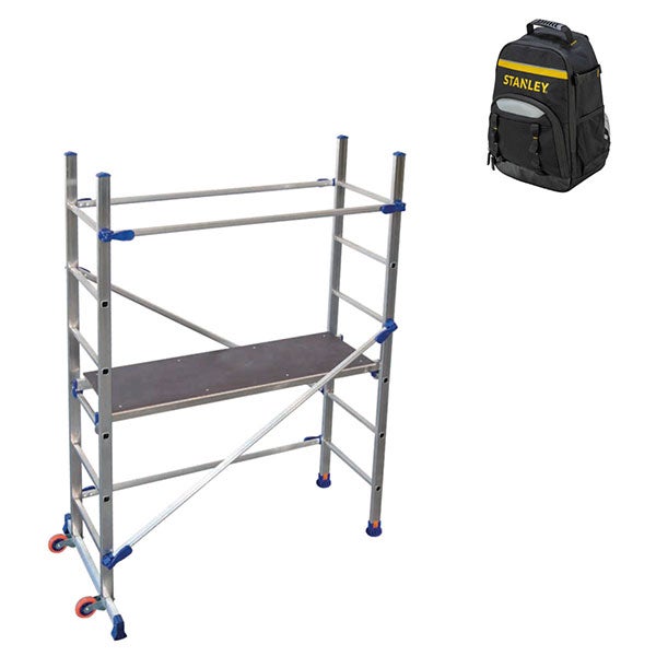 Echafaudage roulant alu - Hauteur de travail maximale de 2.90m + Sac à dos de chantier - P6-SAC