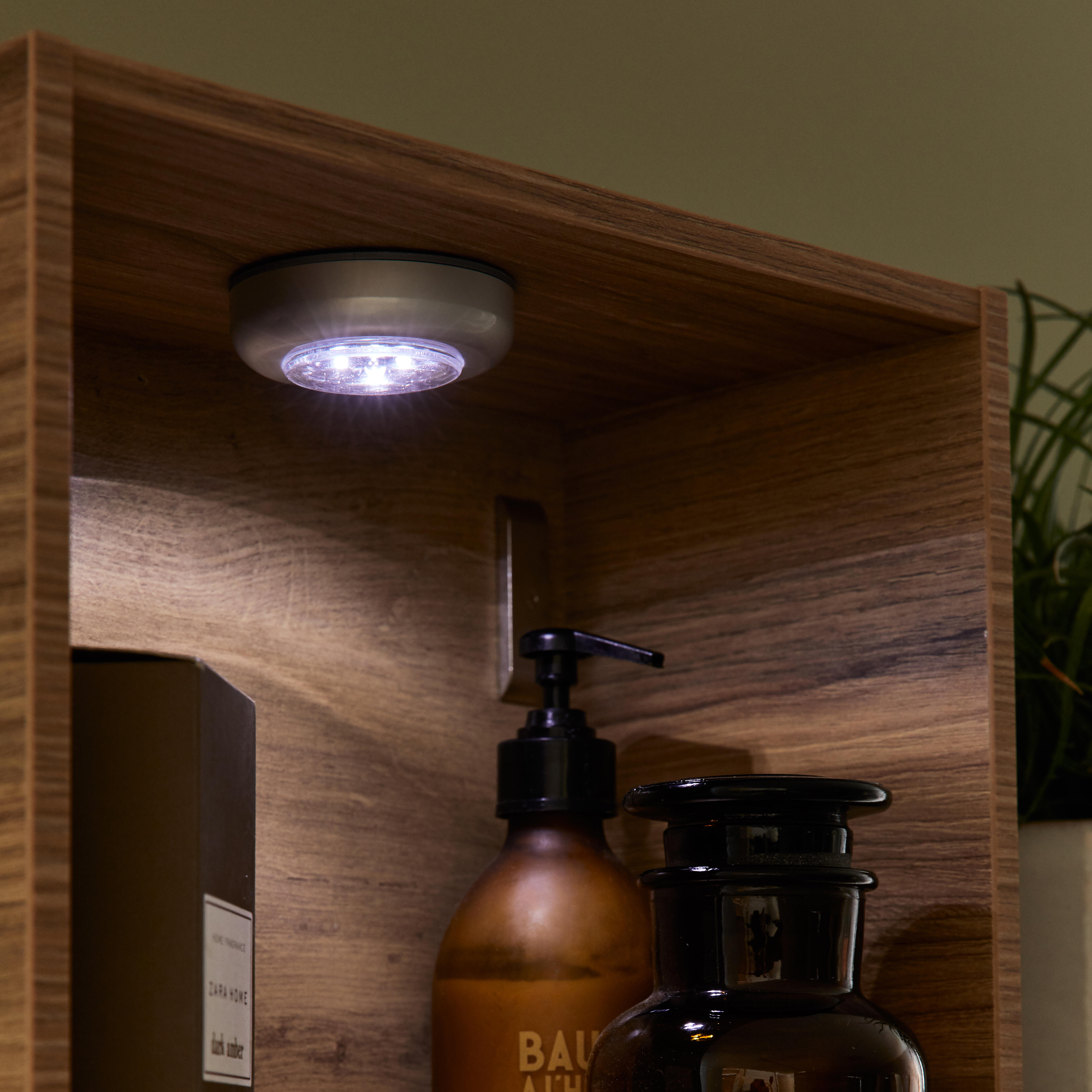 Ce spot nomade LED, à économie d'énergie, s'insère dans tous les endroits de la maison et surtout dans des endroits sans raccordement électrique : tiroir, dressing, étagère dessous de meuble. Il peut aussi vous accompagner durant vos escapades nocturnes. Grâce à sa face autocollante, la pose se fait rapide et facile. Il tient dans une main et il vous suffit d'appuyer dessus pour l'allumer ou l'éteindre. Cette veilleuse fonctionne avec 3 piles AAA incluses. Durée de vie de la pile jusqu’à 100 heures. Fixation avec bande adhésive, système auto agrippant, aimant ou crochet.