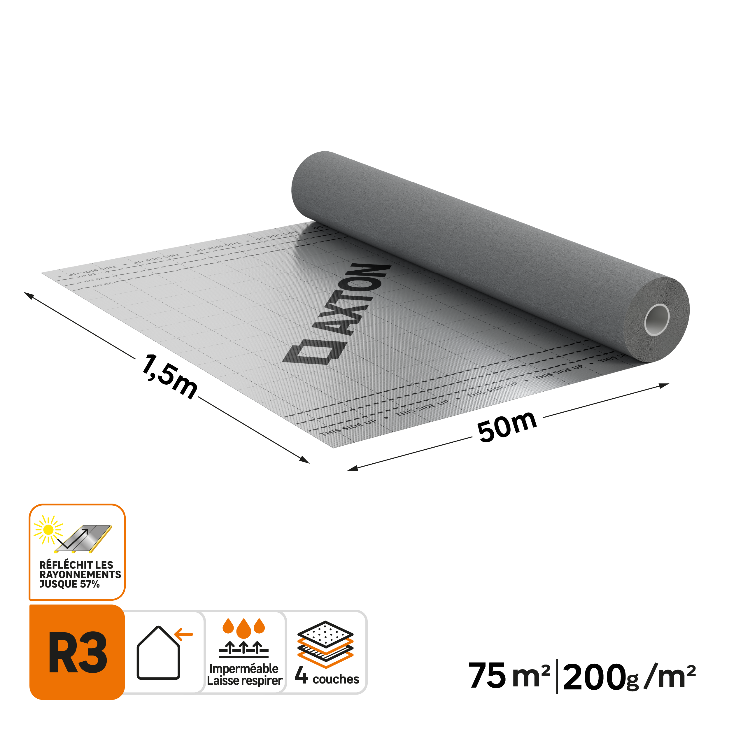 Ecran sous toiture gris métallisé 1,5 x 50 m, AXTON