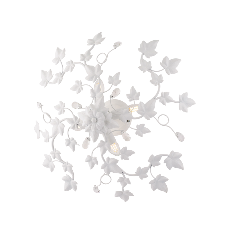 Edera Plafonnier en fer laqué blanc décoration effet shabby chic et strass cristal 4 lumières H.22 d.60 BL50-PL4-BCO