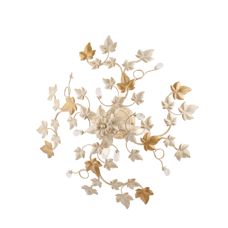 Edera Plafonnier en fer laqué ivoire décor or antique et strass cristal 4 lumières H.22 d.60 BL50-PL4-AV
