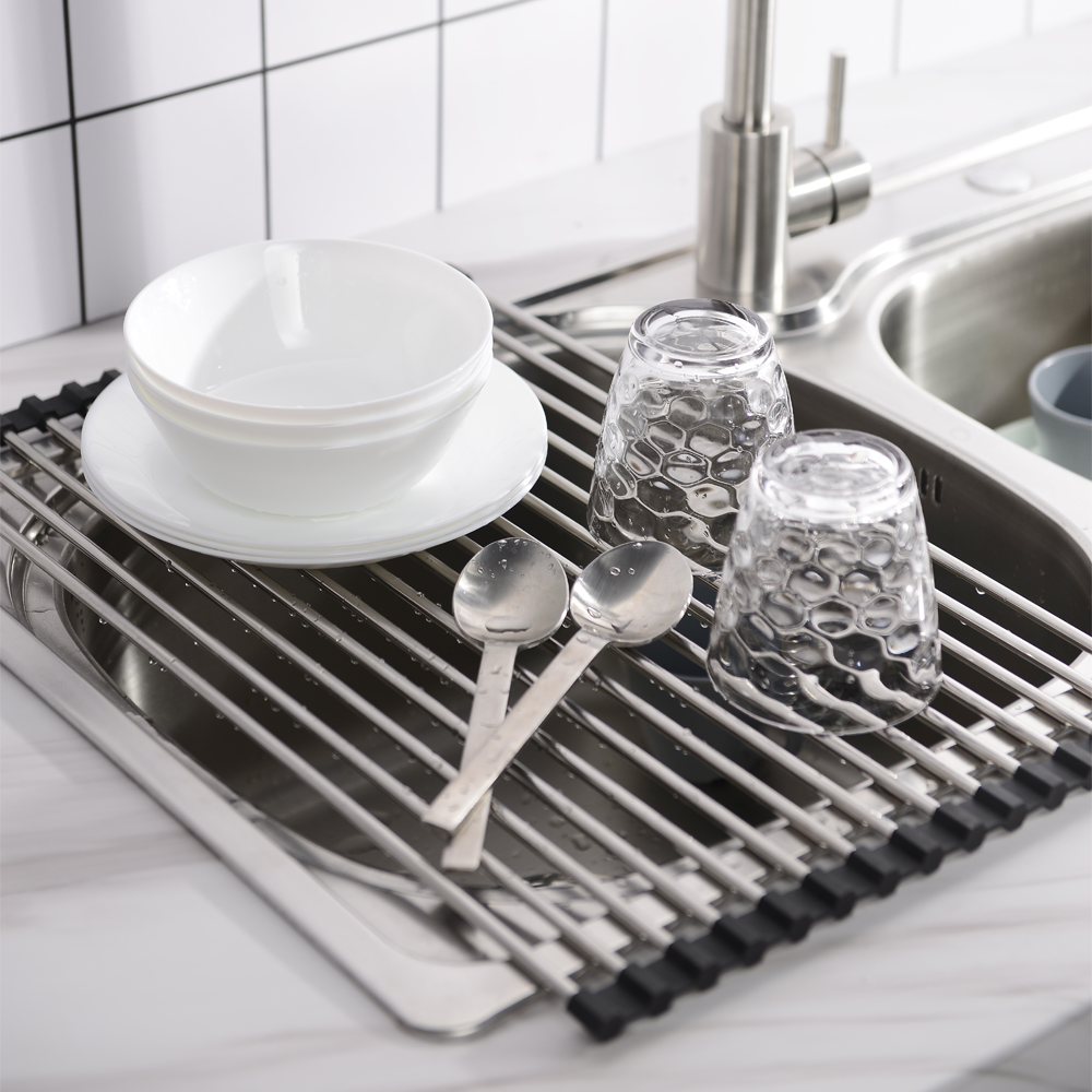 Cet égouttoir à dérouler polyvalent trouvera rapidement sa place dans votre cuisine. Lorsque vous ne l'utilisez pas, il vous suffit de l'enrouler pour le ranger dans vos placards. L'égouttoir à dérouler est très pratique pour les cuisines qui offrent peu de place autour de l'évier.