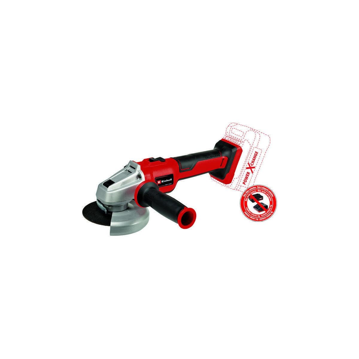 La meuleuse d’angle sans fil Axxio 18/125 Q Einhell est un outil très utile pour effectuer des travaux à l'atelier, à la maison ou au garage. Puissance, absence de fil et confort : des caractéristiques prioritaires tout au long de la conception de l’outil. La meuleuse d’angle fait partie de la gamme Power X-Change au sein de laquelle toutes les batteries sont compatibles avec tous les appareils. Elle atteint une performance optimale avec des batteries 2,5 Ah ou supérieures issues de cette gamme. Le moteur sans charbon offre davantage de puissance et une durée de fonctionnement plus longue. La fonction de démarrage progressif et le dispositif anti-redémarrage assurent une meilleure sécurité de l’utilisateur. Le design compact avec revêtement souple Softgrip ergonomique et la poignée auxiliaire permettent une utilisation confortable. Grâce au désaccouplement du moteur et de l’engrenage, le fonctionnement est très silencieux. Le capot de protection à réglage rapide permet une utilisation flexible. La poignée auxiliaire peut être fixée dans deux positions pour plus de flexibilité. Grâce à l’écrou à fixation rapide, plus besoin de clé à ergots pour remplacer le disque de coupe : le changement de disque s'effectue rapidement et sans outil. La meuleuse d’angle sans fil est équipée d’une protection contre les surcharges. Le carter d’engrenage robuste en aluminium a été conçu pour garantir une grande longévité. L’outil est vendu sans batterie ni chargeur. Le disque de coupe adapté (diamètre 125 mm) est lui aussi disponible séparément.