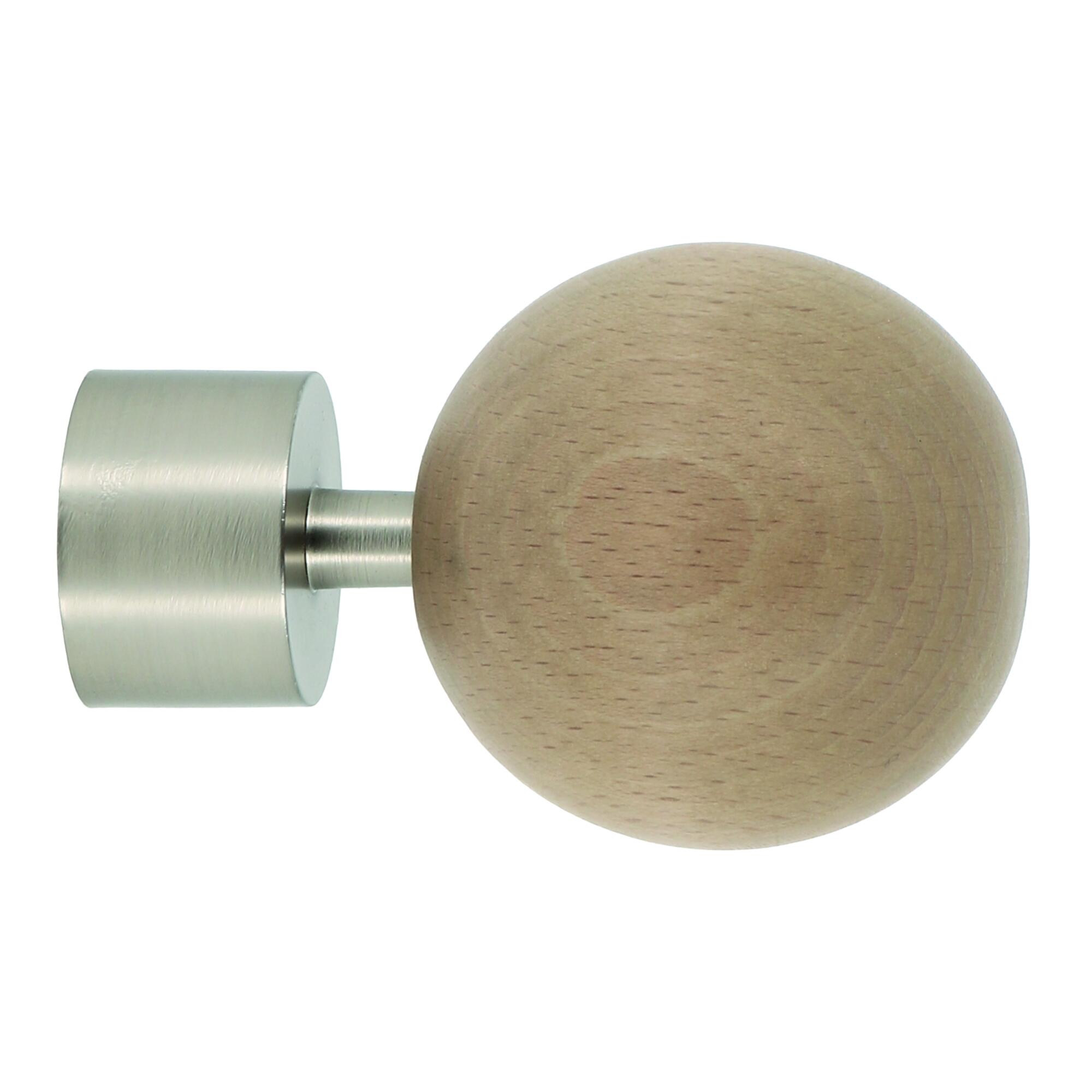 Tendance et modernité avec cet embout bi-matière, boule en bois et embase métal chrome mat.
