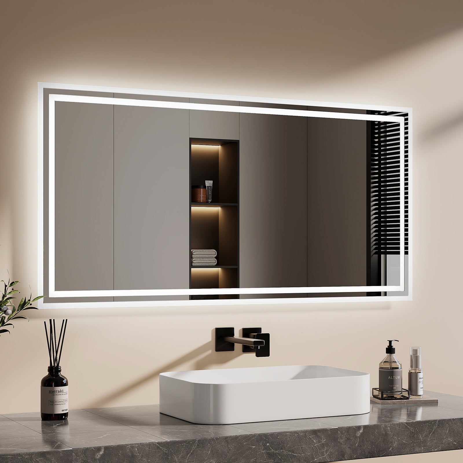 ⚠Avant de passer commande, veuillez vérifier attentivement les dimensions du miroir de salle de bain à LED pour éviter toute erreur de commande. (Assurez-vous de mesurer votre espace d'installation avant l'achat)