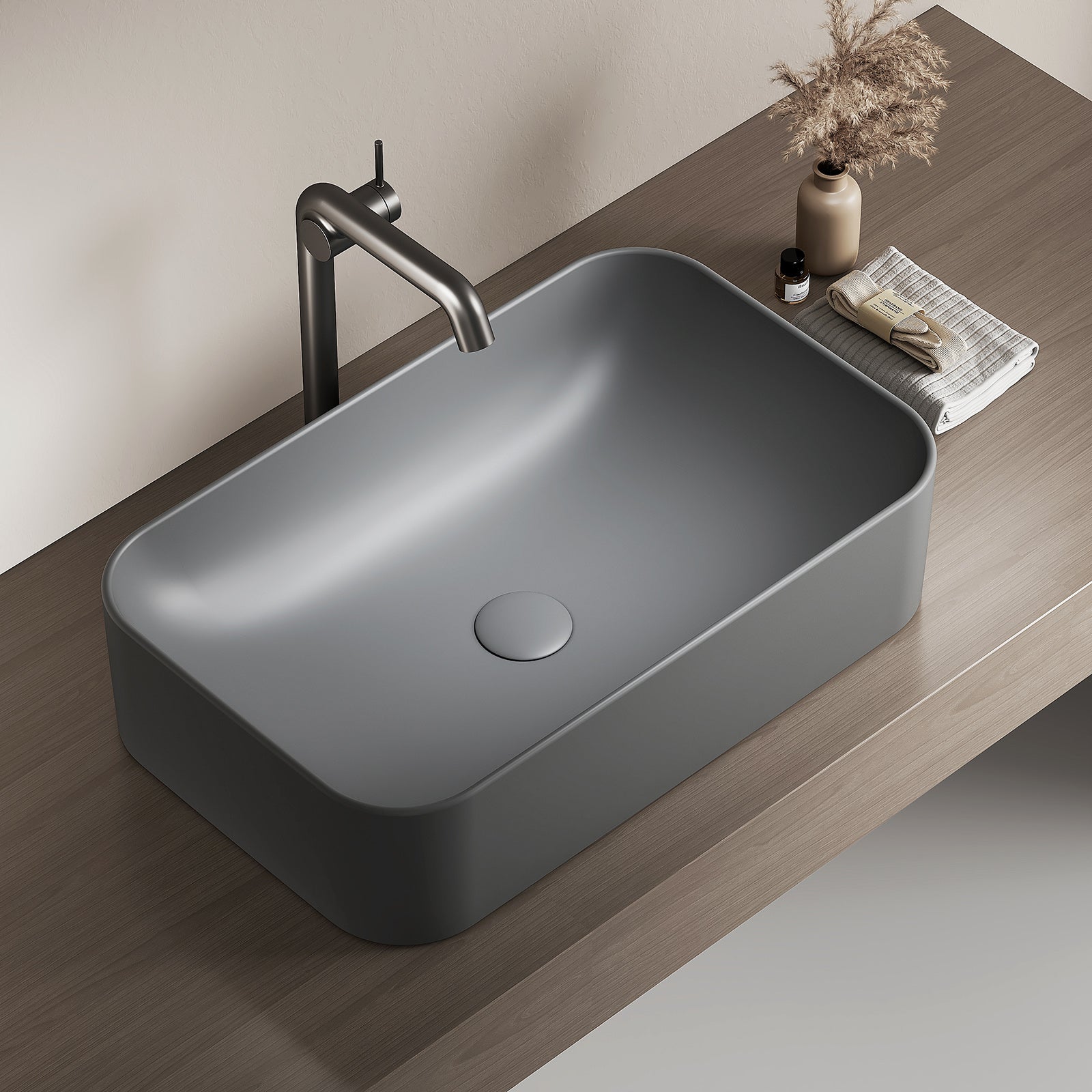 EMKE Vasque à Poser en Céramique rectangulaire 61 x 38 x 15 cm - Gris Foncé Mat
