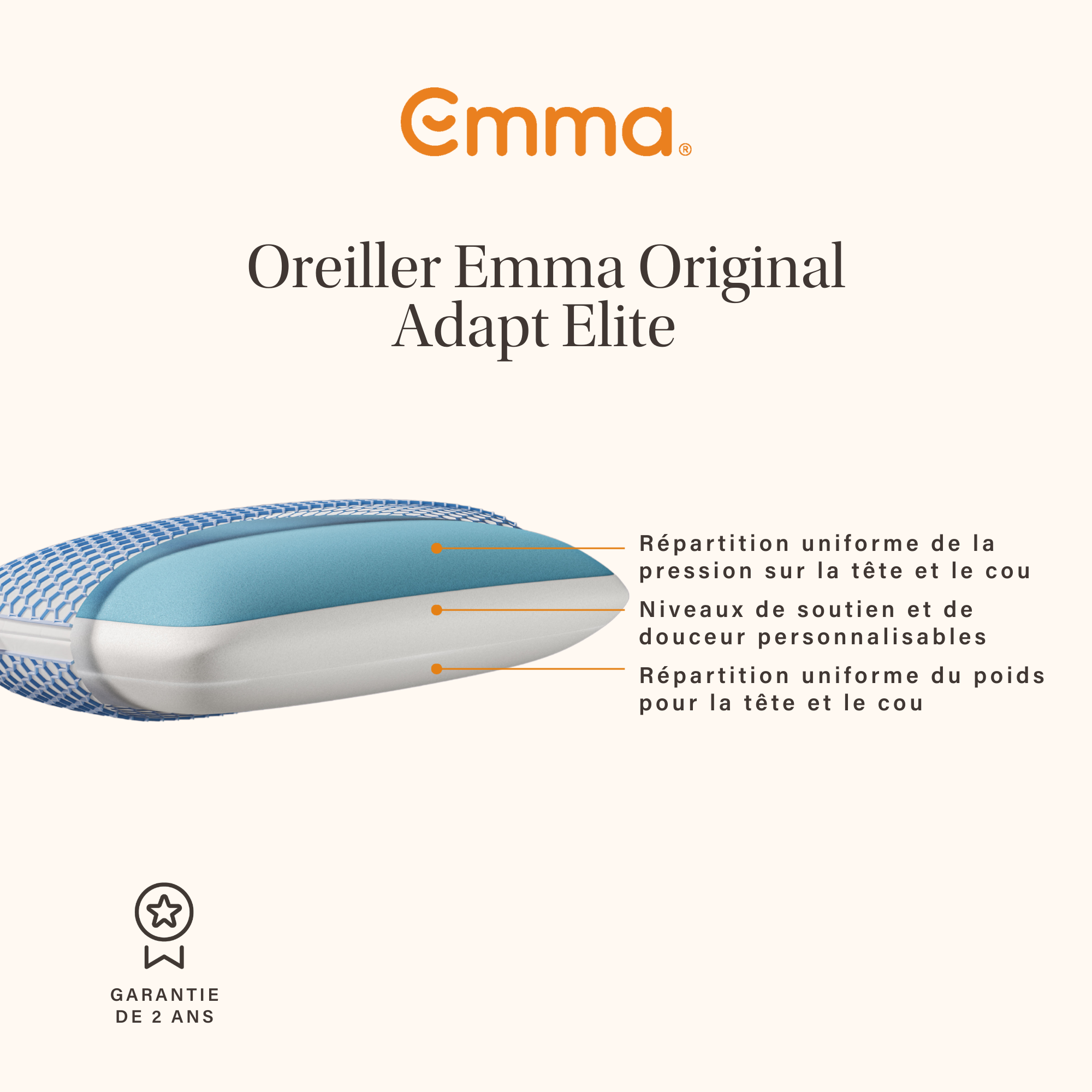 EMMA | Oreiller Emma Original Adapt Elite 40x70 cm | Mémoire de Forme Ergonomique | AirGrid® Ultra Respirant| Housse Lavable