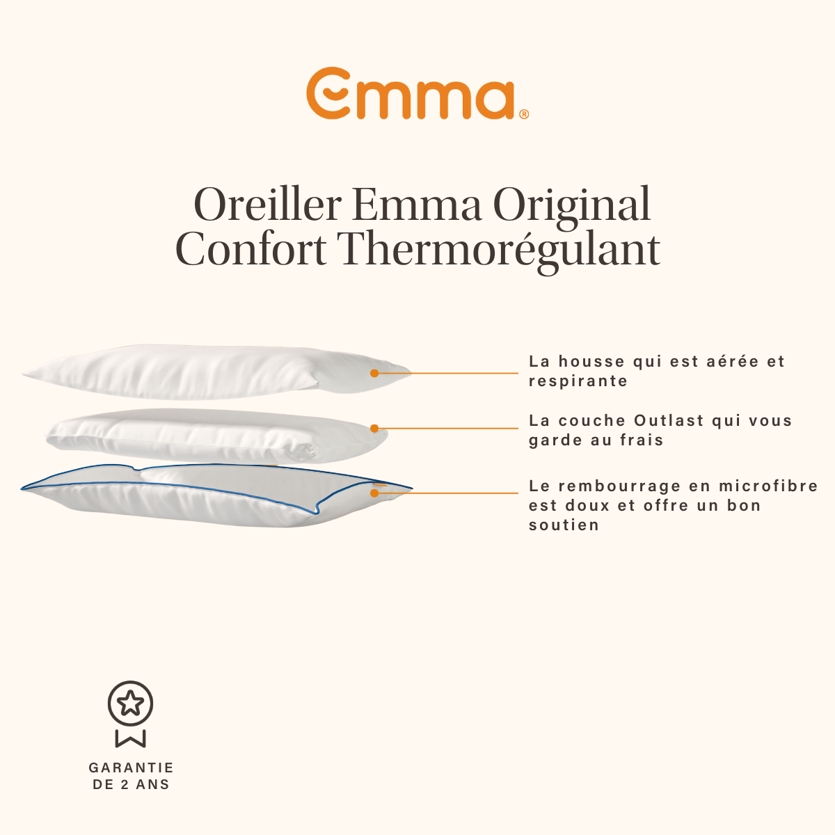 EMMA | Oreiller Emma Original Confort Thermorégulant 60x60 cm | Thermorégulant | Hauteur Adaptable | Hypoallergénique