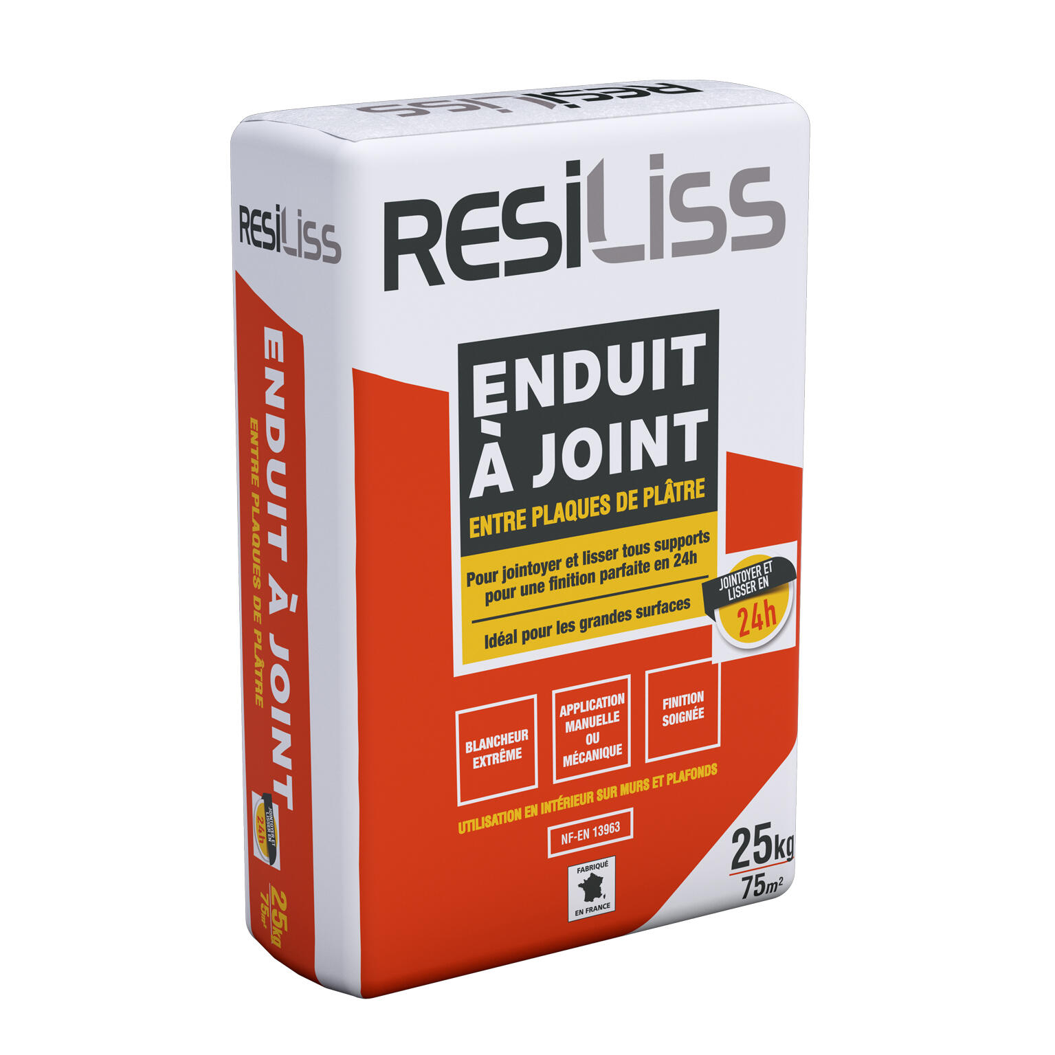 Enduit à joint 2 en 1 Jointer/Lisser lent 24h RESILISS, poudre RESI blanc 25 kg