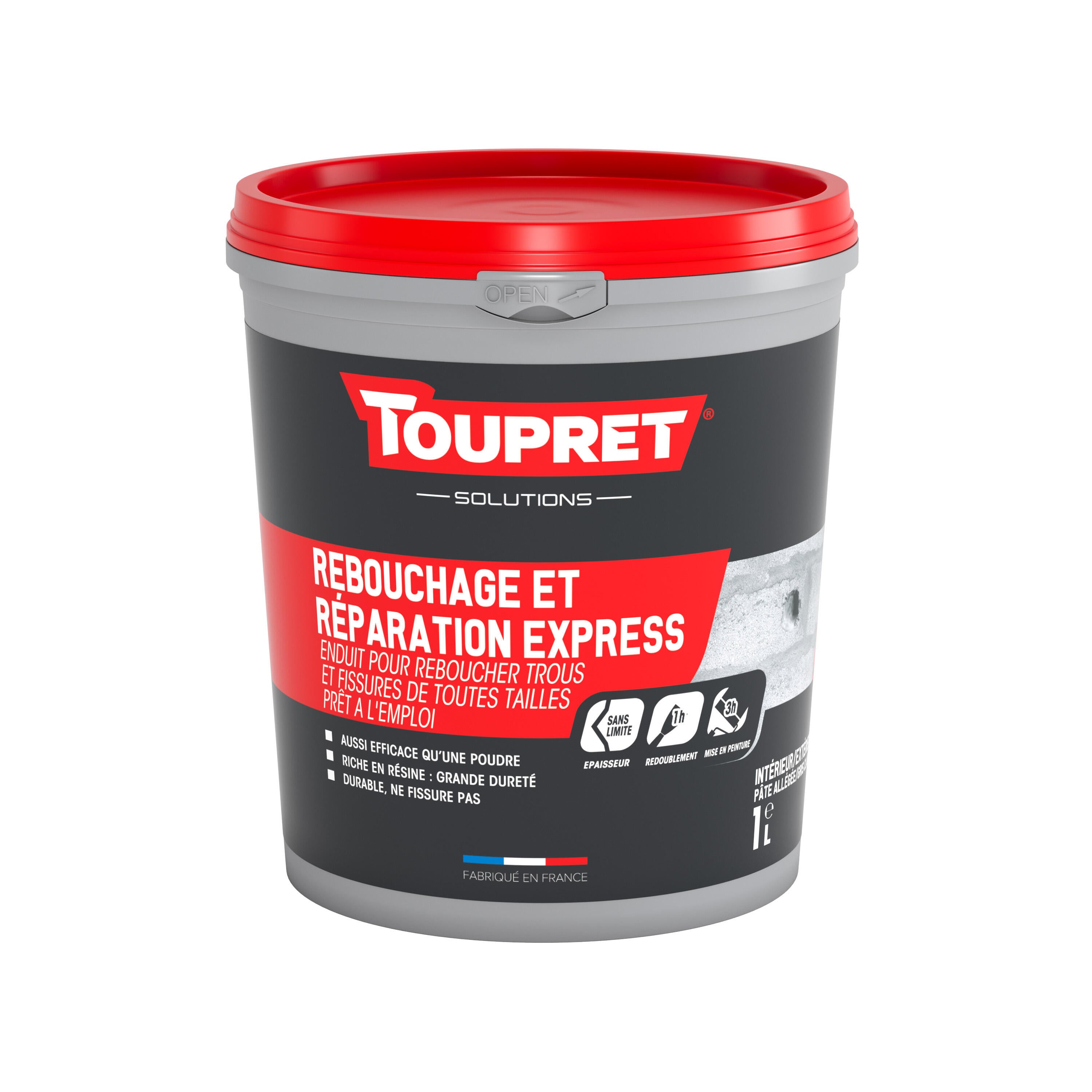 Enduit de rebouchage en pâte Reparation express TOUPRET gris clair 1 l