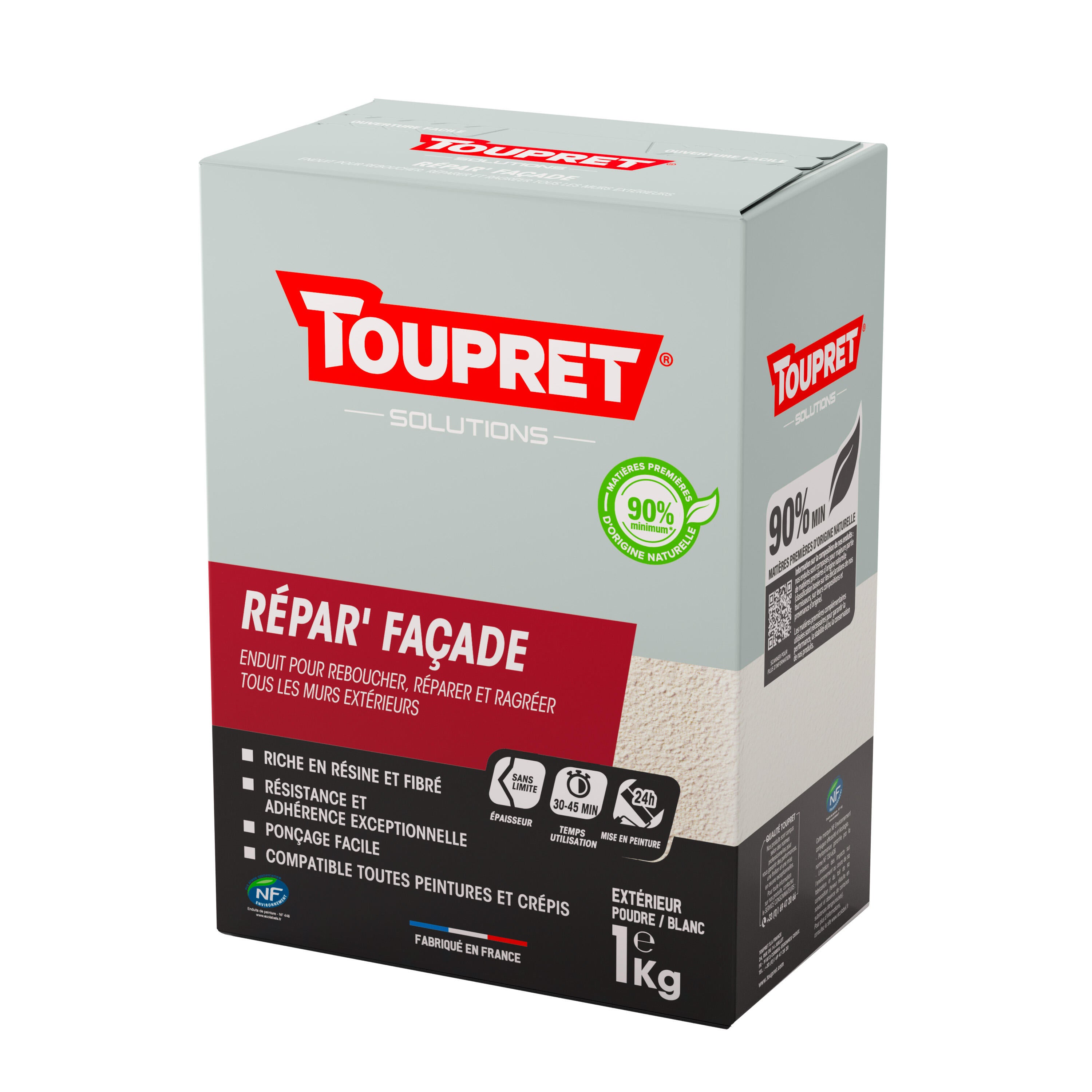 Enduit de rebouchage en poudre Repar'façade TOUPRET blanc 1 kg