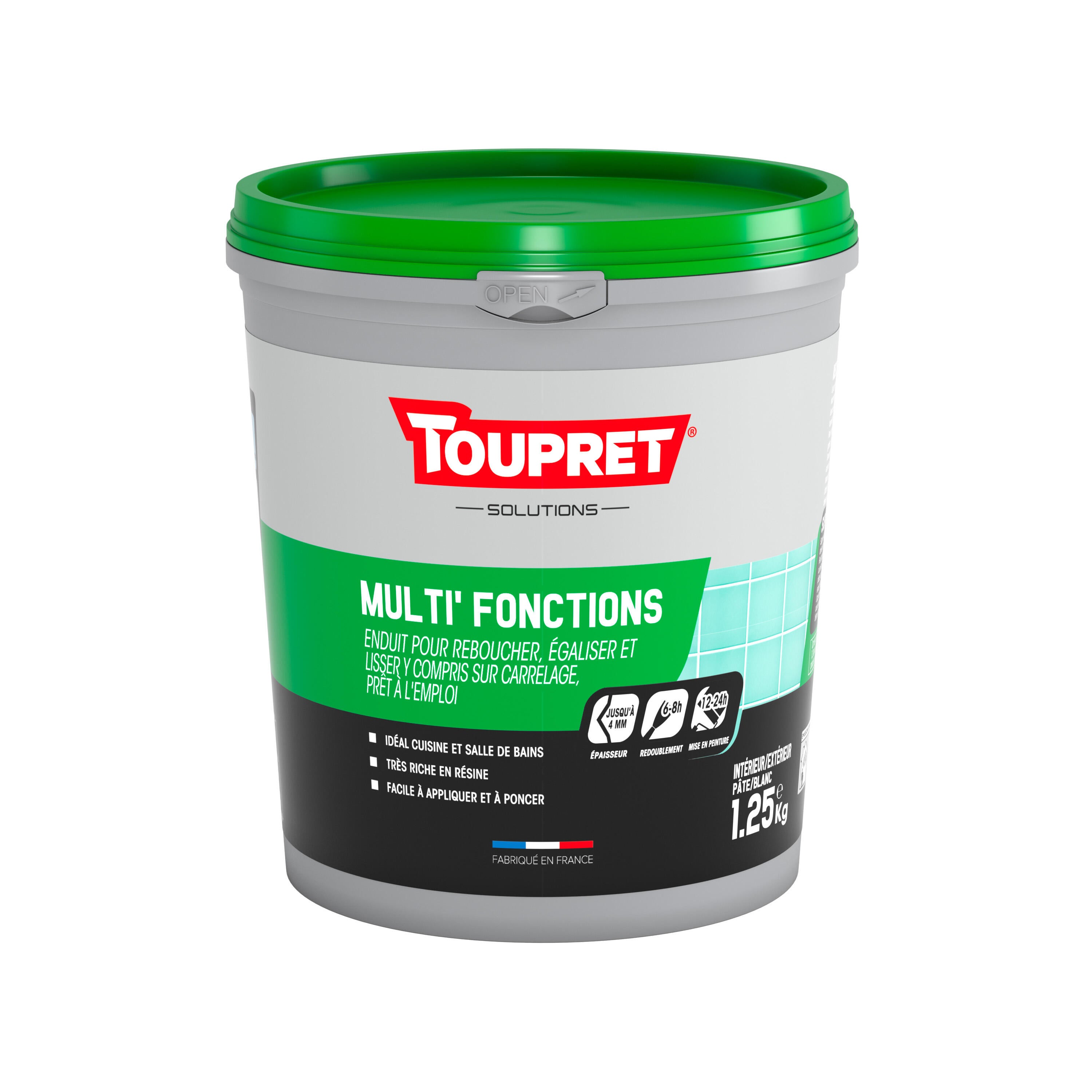 Enduit multifonctions et multi supports. Pour reboucher, lisser et égaliser y compris sur carrelage. Idéal pour vos petits travaux. Peut s'appliquer en pièce humide. Recommandé pour cuisine et salles de bain.