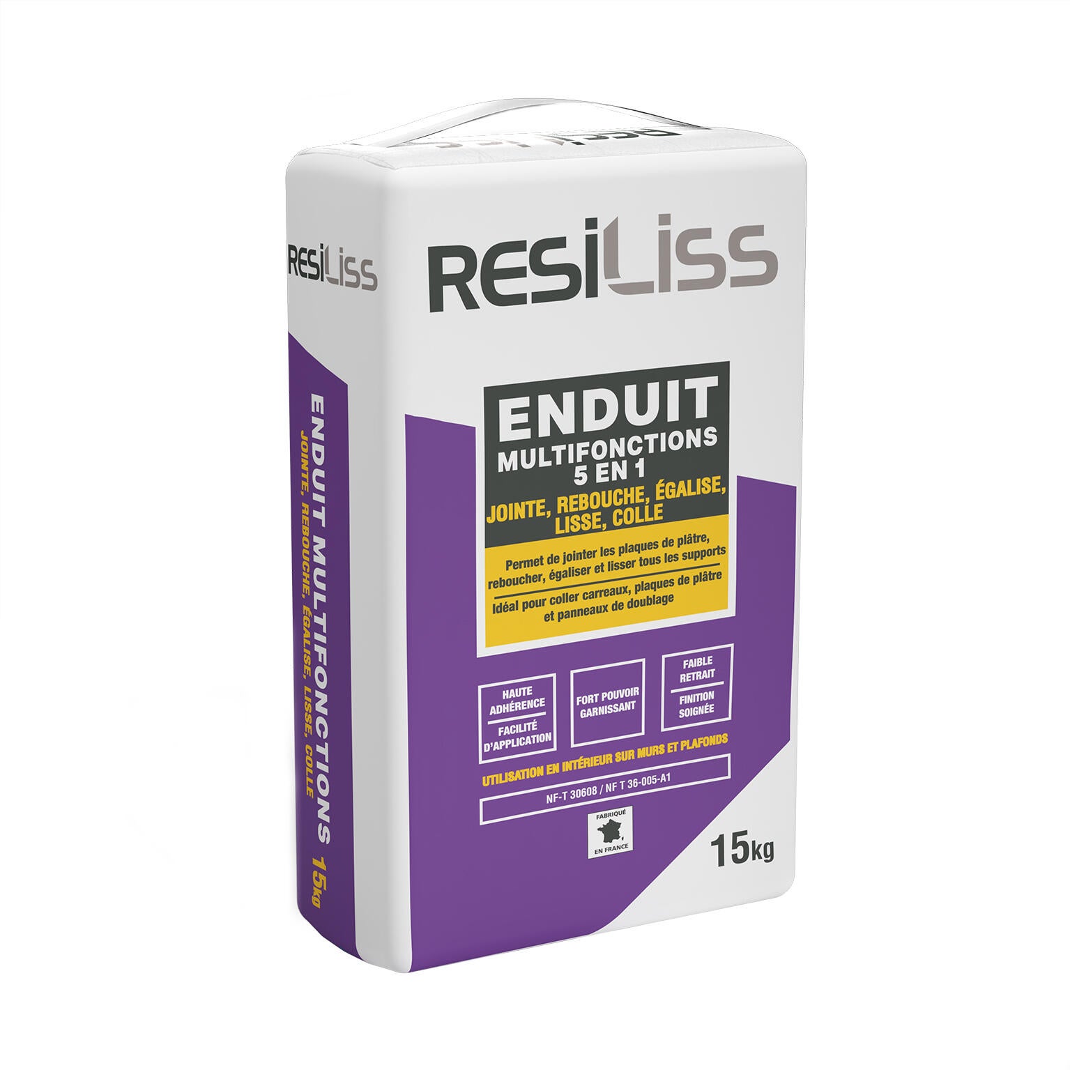 Enduit multifonctions RESILISS, colle rebouche enduit poudre RESI blanc 15 kg