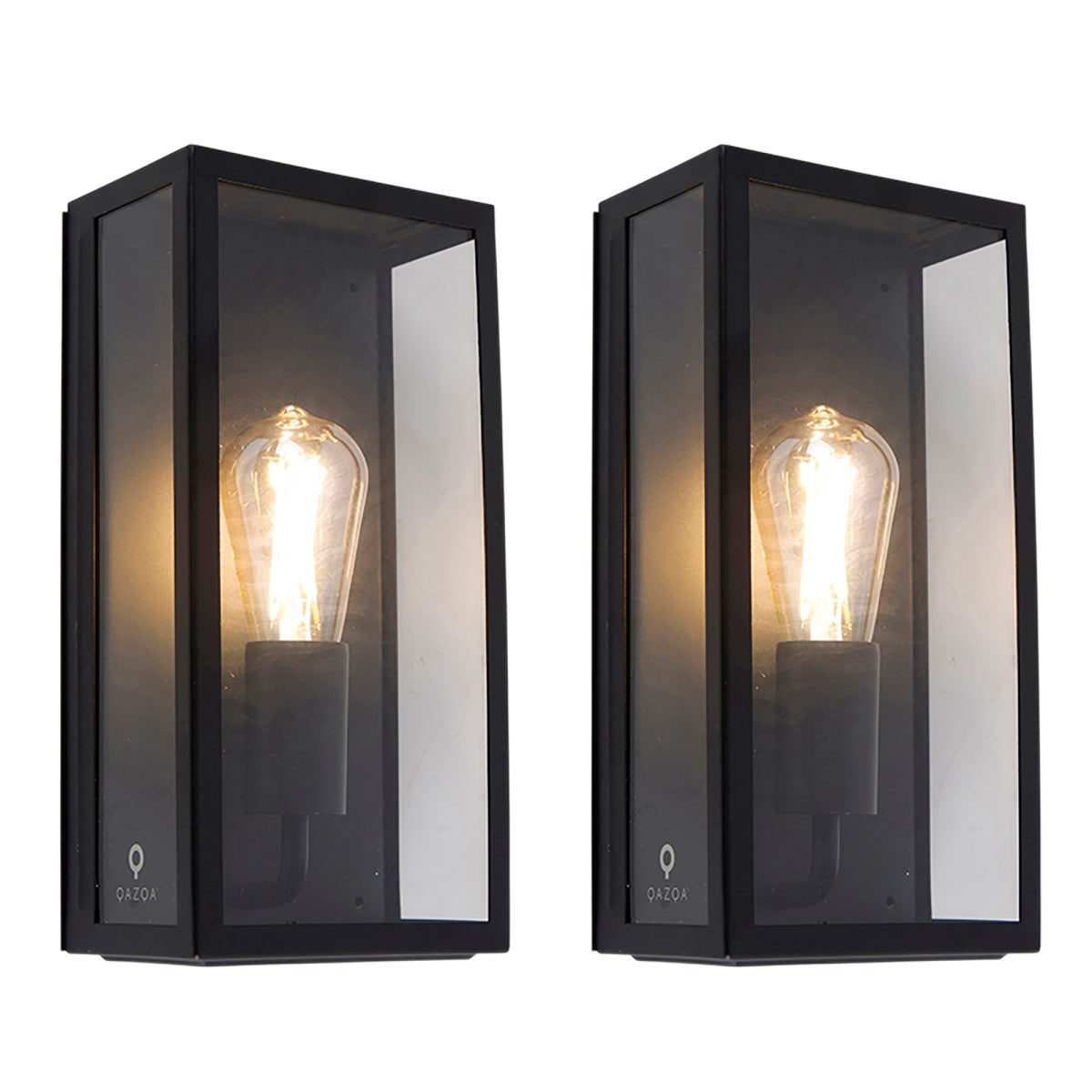 Ensemble de 2 appliques murales extérieures noires IP44 avec verre - Rotterdam