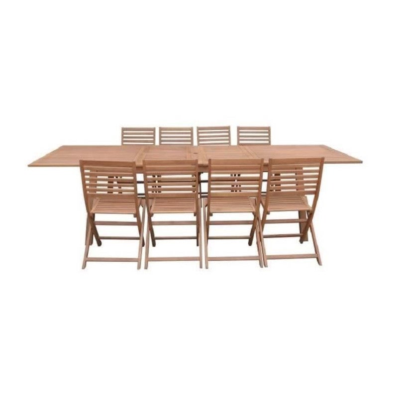 Ensemble repas de jardin 8 a 12 personnes - Table extensible 200/250/300 x 100cm + 6 chaises - Bois Eucalyptus FSC