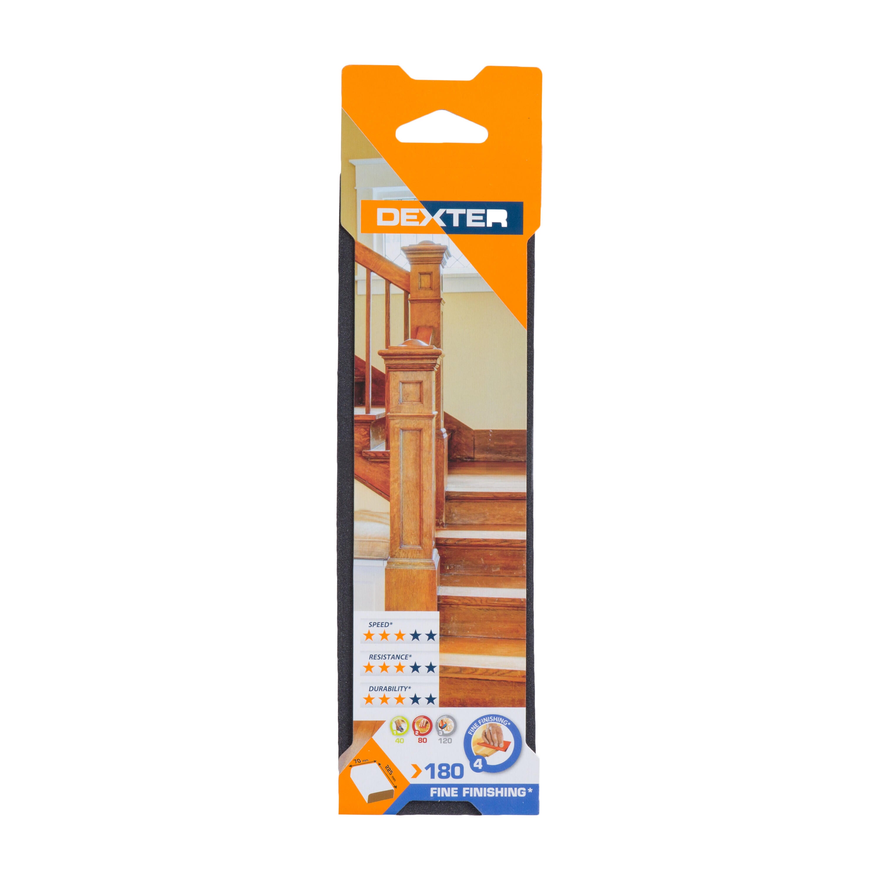 Éponge abrasive oxyde d'alumine, DEXTER, l.70 x L.225 mm grain 180