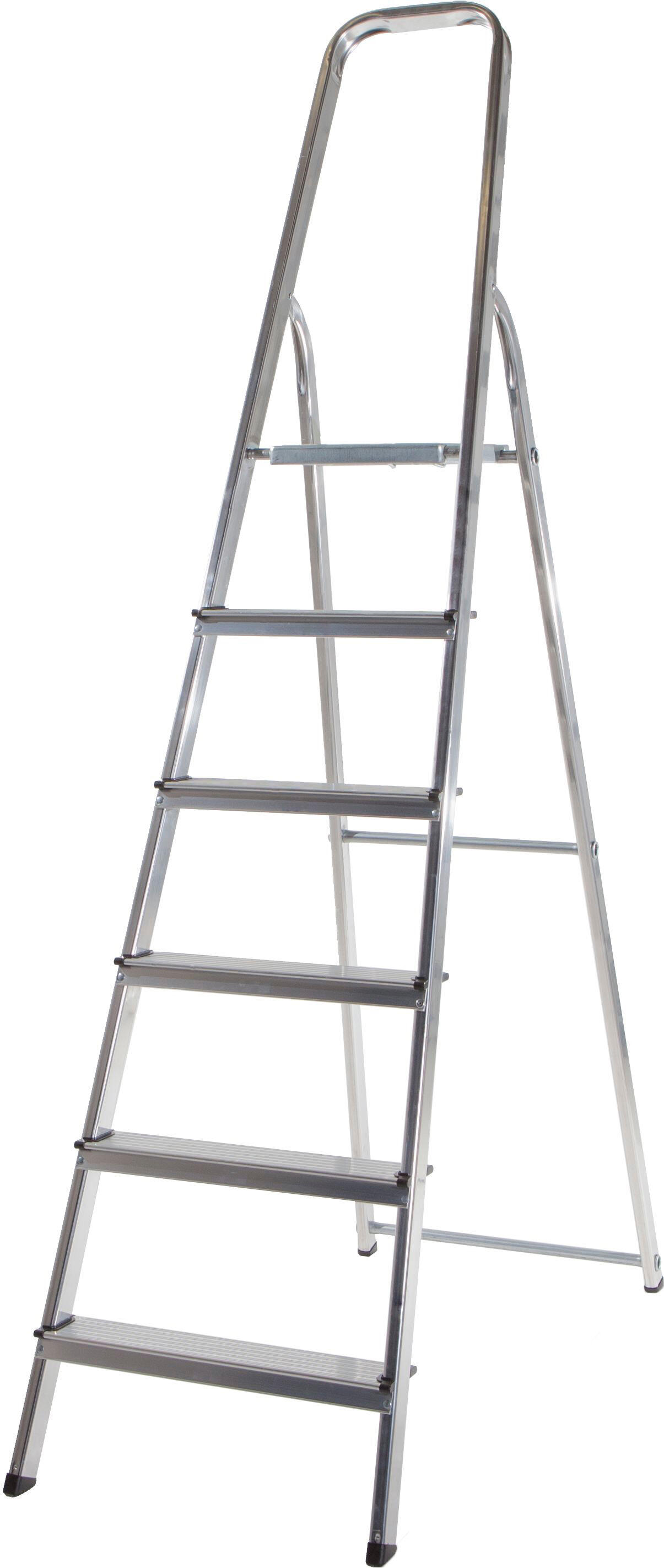 Escabeau 6 marches SELEKTA avec montants et plateforme en acier, marches en aluminium et liaisons de sécurité anti-écartement (marches/montants) fixées par rivets.