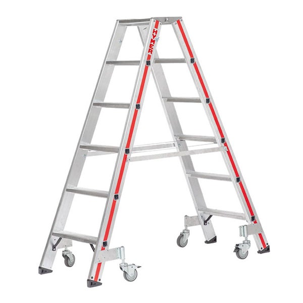 Escabeau double roulant 2x6 marches - Hauteur max. de travail 2,9m - 8024/2X6-4P
