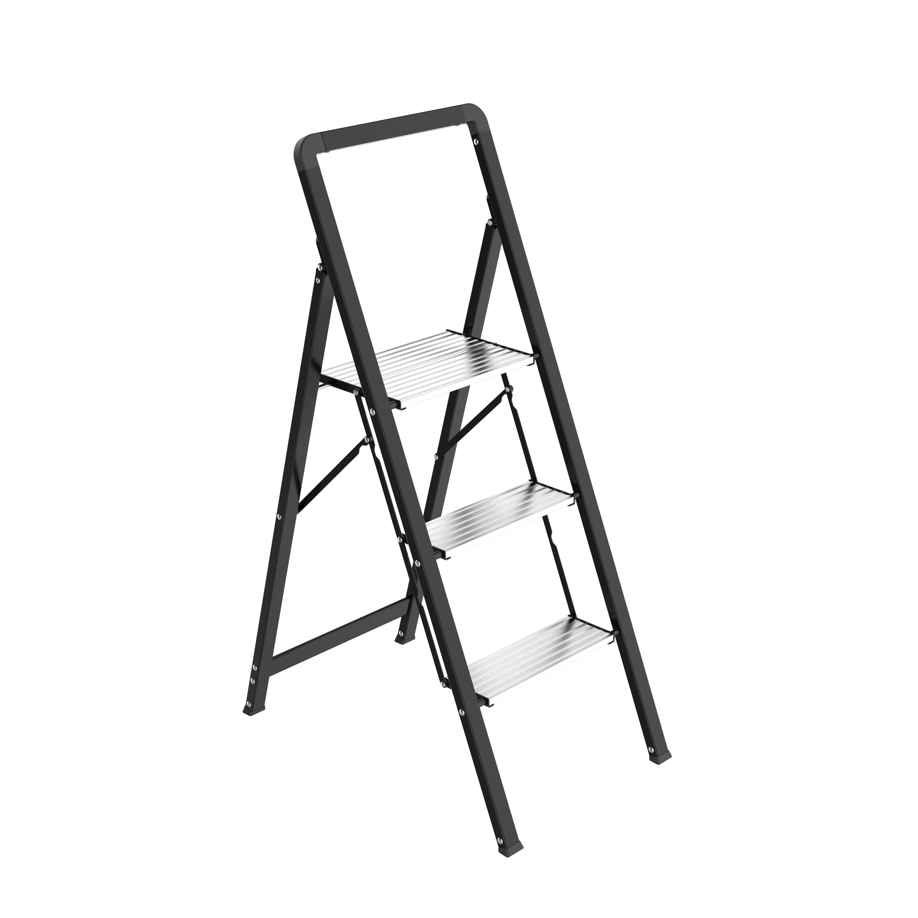 L'escabeau Ultraslim Black est un escabeau ultraléger avec des marches en aluminium. Les larges marches antidérapantes de 11,5 cm et la grande plateforme antidérapante de 30 x 20 cm assurent une stabilité et un confort maximum. Une fois replié (4,3 cm), il est très compact et facile à ranger, occupant à peine de place. Parfait pour un usage quotidien.