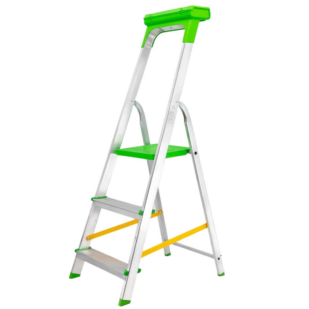 L escabeau 3 marches safetool, avec une hauteur de travail allant jusqu'à 265 cm, sera parfait pour tout type de travaux. Sa conception en aluminium et sa capacité à être plié vous permettront de le déplacer et le ranger facilement.