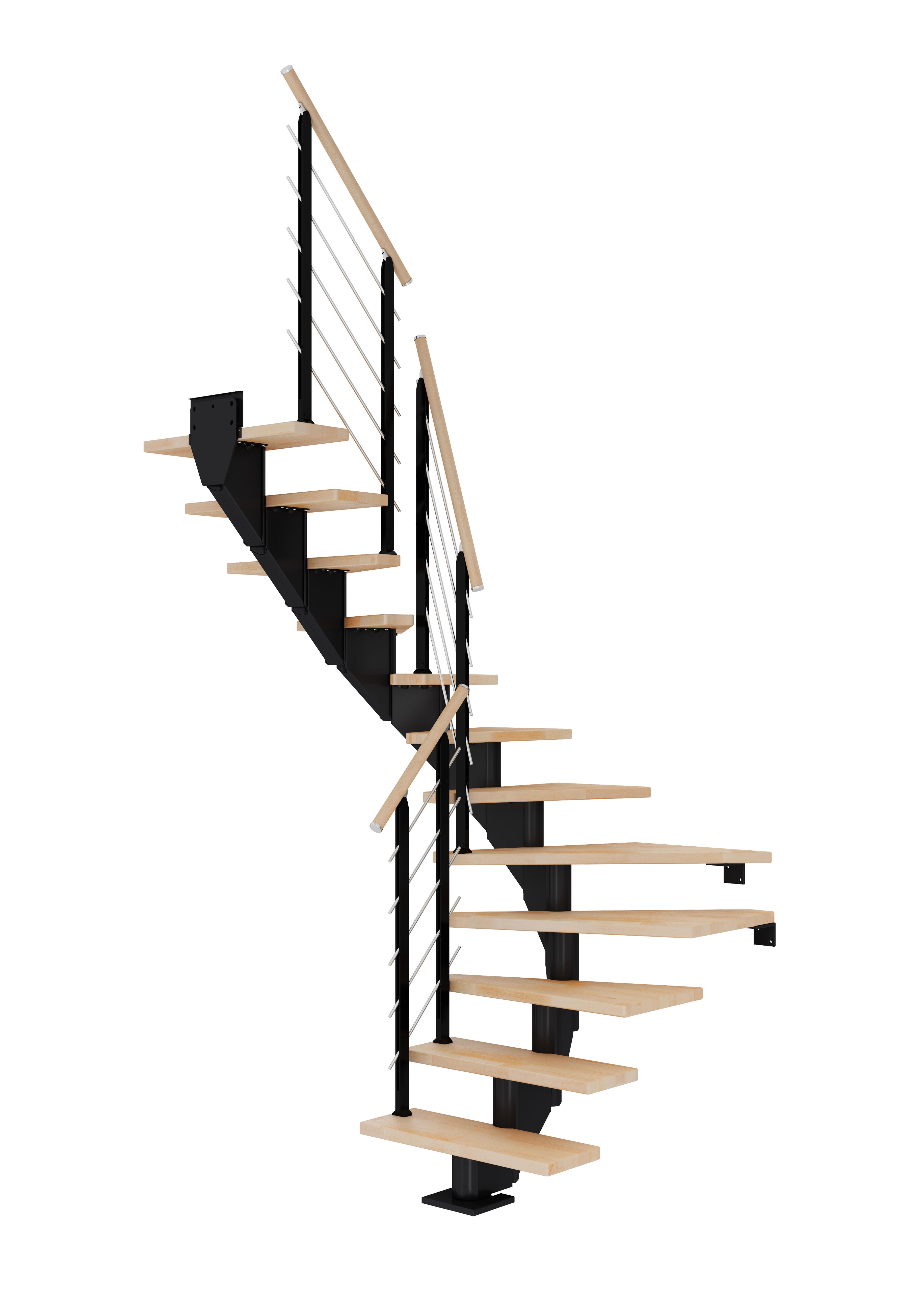 Escalier 1/2 tour milieu acier noir 12 marches hêtre huilé, Hamburg design