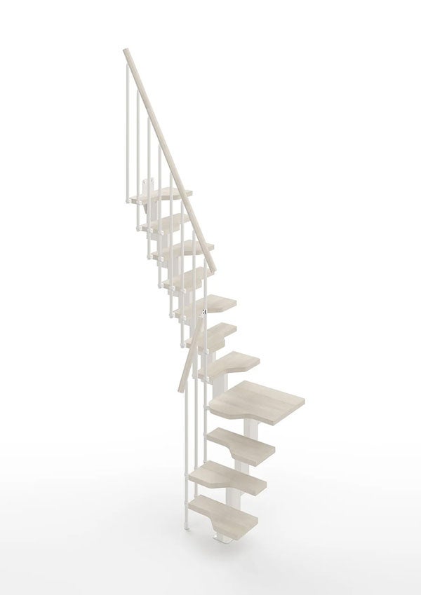 Escalier 1 quart tournant 10 marches - Hauteur à franchir de 2.21 à 2.61m - Largeur 61cm - Couleur bois et blanc - MINI61/L/SBMBLA-10