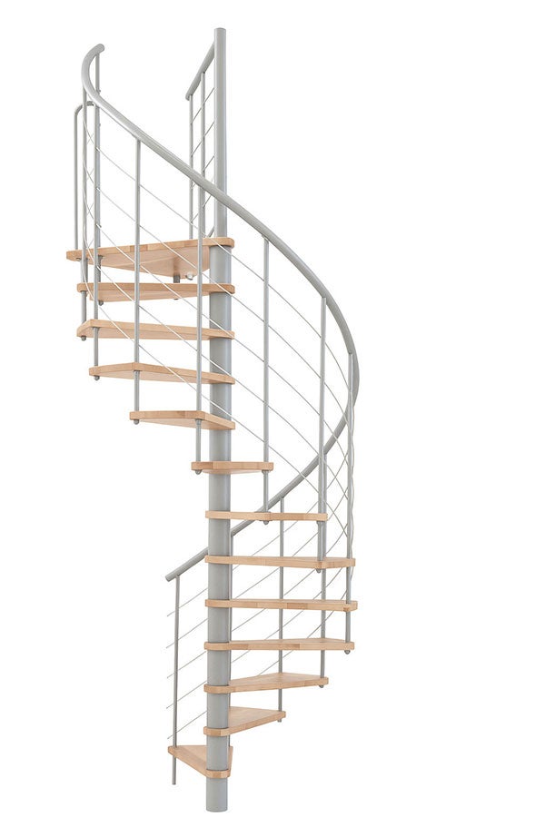 Escalier colimaçon 13 marches - Hauteur à franchir 2.54 à 3.05m - Structure grise et marche hêtre - Diamètre 100cm - VENE100/GH-13