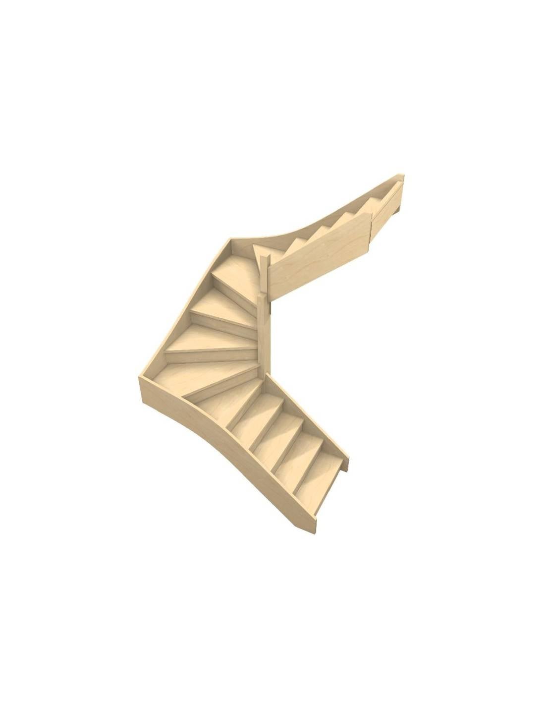 Escalier Double Quart Tournant - Sans Rampe - Tournant Droite Avec Contremarches Hêtre LC H Sol Sol 285 Cm