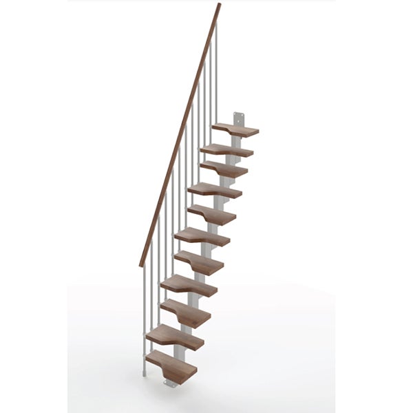 Escalier droit 14 marches - Hauteur à franchir de 3.01 à 3.57m - Largeur 61cm - Couleur noyer et gris - MINI61/I/SGMNOY-14