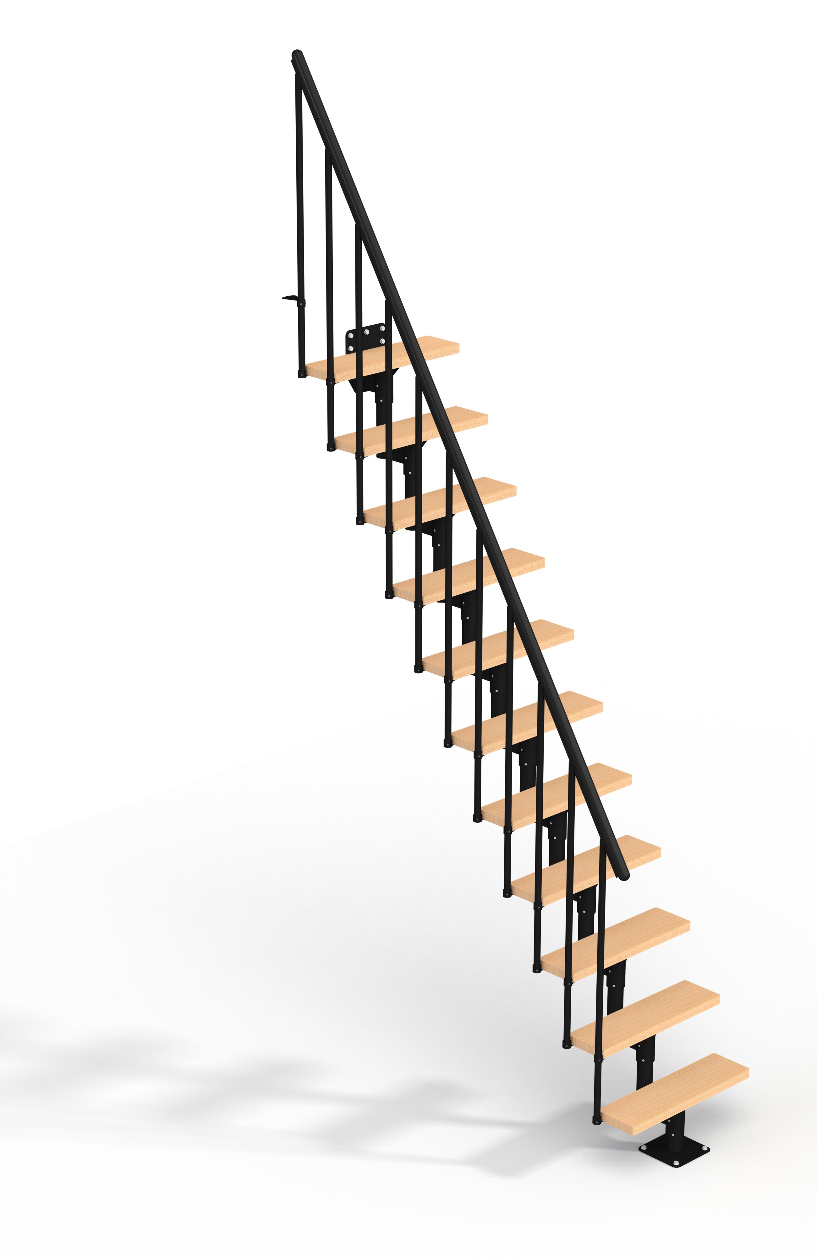 Escalier droit acier noir 11 marches hêtre, Dallas, l.69cm