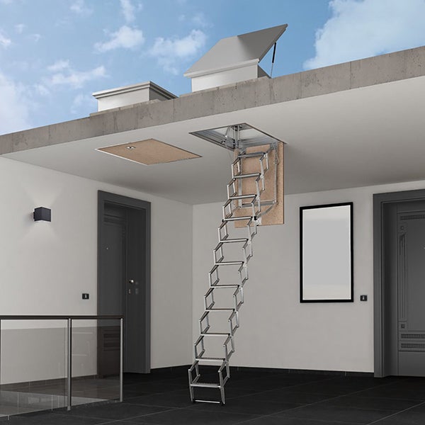 - Escalier escamotable accordéon qui assure un accès à une toiture, une terrasse ou un toit-terrasse.