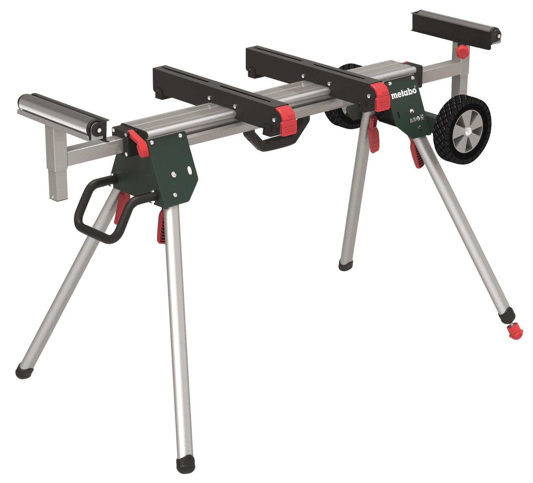 Socle pour scie à onglets KSU 251 ◾Socle pour scie à onglets léger et robuste avec fonction Trolley pour l'utilisation mobile avec même avec la scie montée ◾Rapidement prêt à l'emploi grâce aux pieds verrouillables et à la possibilité de réglage pour plus de stabilité ◾Supports de pièces à usiner escamotables avec roulettes et butée rabattable pour des coupes en série précises ◾Convient également pour toutes les scies à onglets courantes de grandes marques grâce au socle de machine universel (montable sans outil) ◾Longueur totale : 127 cm – 250 cm ◾Hauteur des supports pour les pièces à travailler : 92 - 99 cm ◾Charge maximale dans la zone médiane : 250 kg ◾Poids : 23 kg