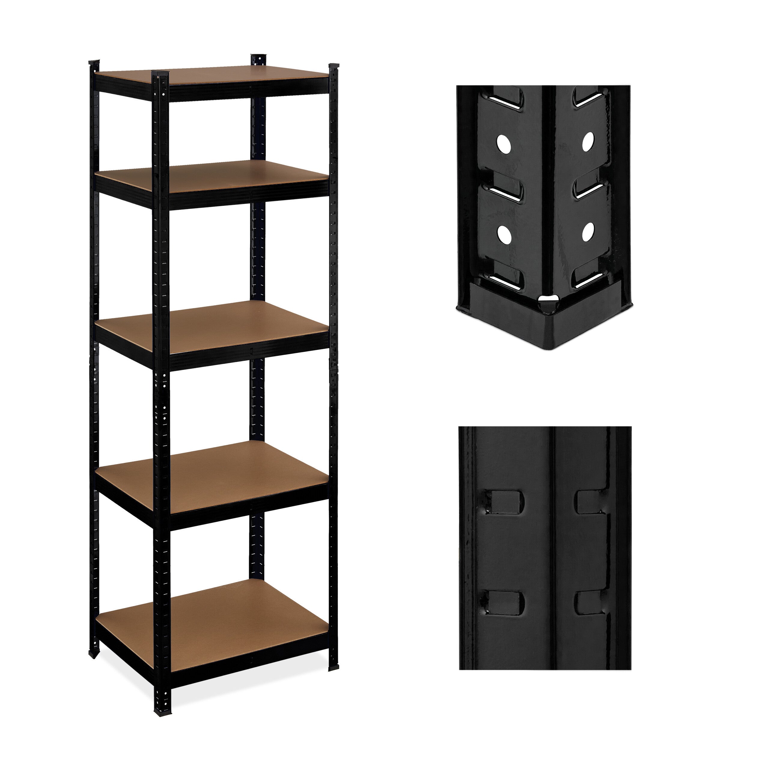 Étagère à charge lourde, HxLxP : 180x60x45 cm, jusqu'à 500 kg, 5 niveaux, cave, garage, stockage, acier, noir, Relaxdays