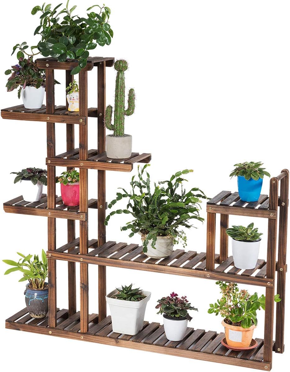 ----【7 étagères en bois】 : L'étagère comporte 7 niveaux en tout, ce qui offre un grand de rangement. Cette étagère à fleurs à plusieurs étages, avec une conception à couches hautes et basses, est capable de placer suffisamment de pots de plantes. Les plantes peuvent être maintenues à une distance appropriée les unes des autres pour une croissance saine.