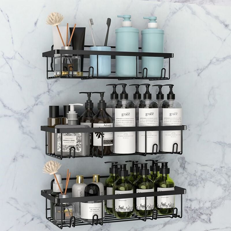 Etagère Douche sans Percage, Lot de 3 Etagere Salle de Bain Rangement Salle, Accessoire de Salle de Bain , Rangement Douche Noir