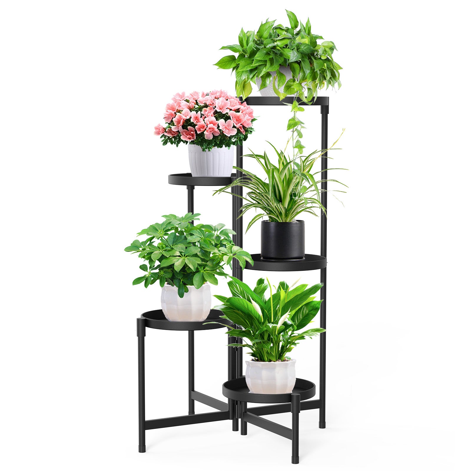 Étagère Métallique 5 Niveaux Design Moderne pour Plantes - Pliable, Résistante & Style Industriel - Idéale Salon, Balcon ou Jardin - Noir