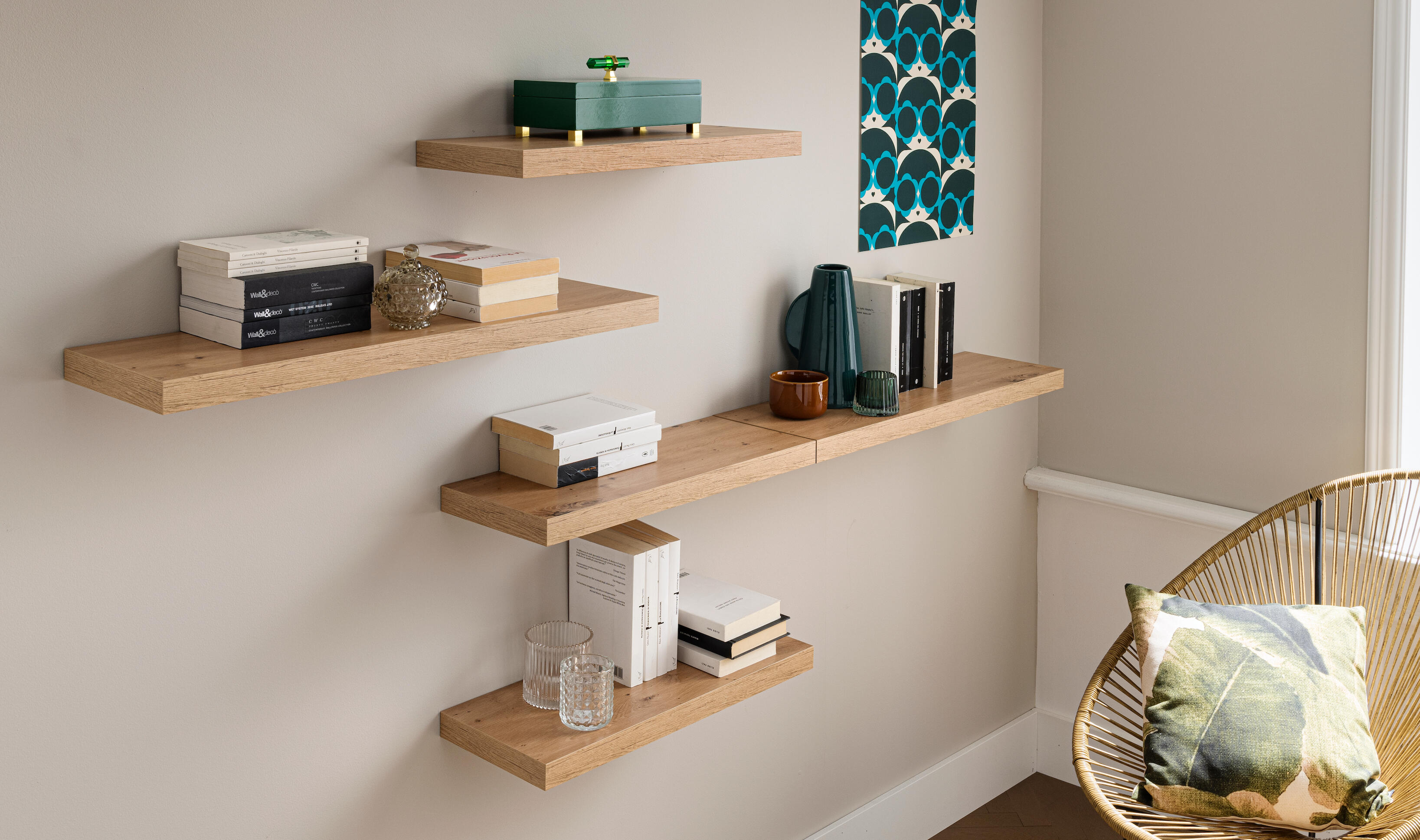 Etagère murale Elena décor chêne artisan, L.60 cm x P.23 cm, Ep.3.8 cm